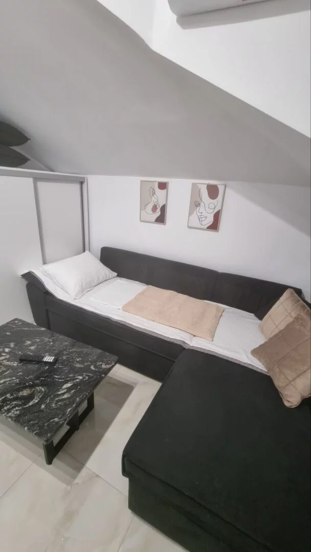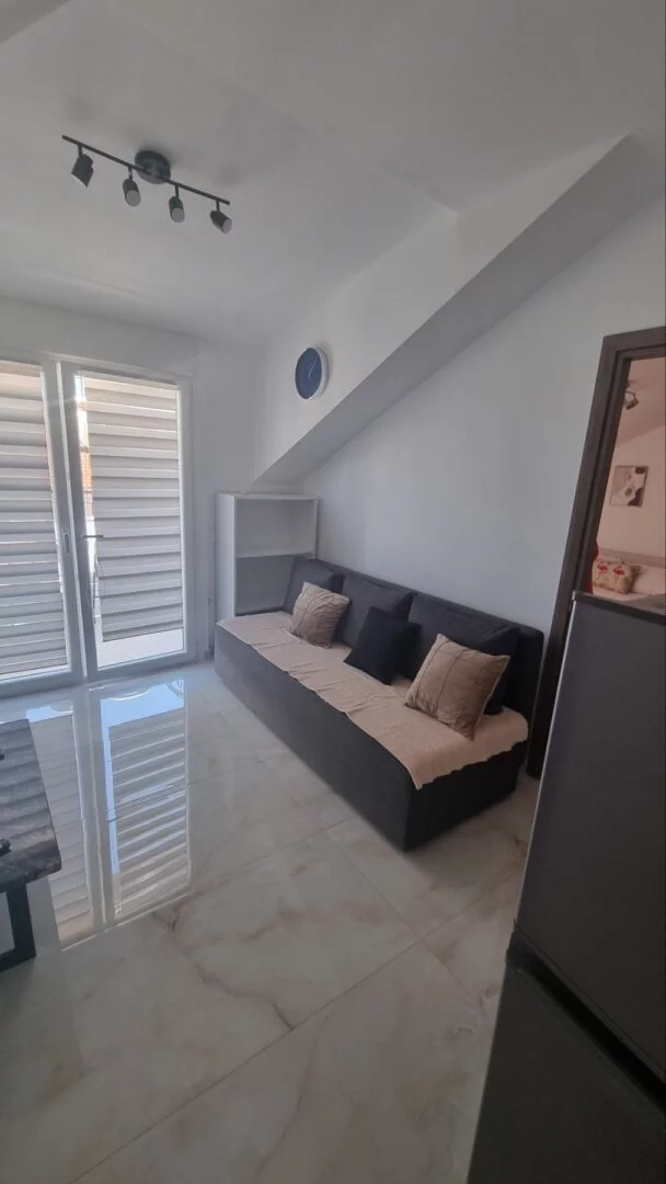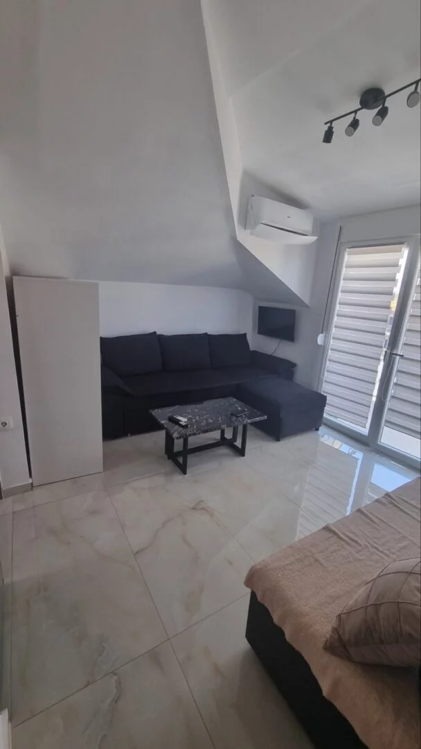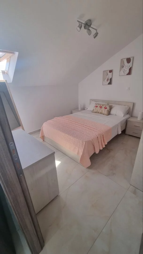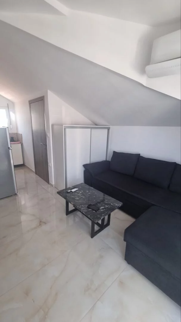 - Apartmani se nalaze na trećem spratu u novijoj zgradi, u potkrovlju tipa penthouse. Apartman je potpuno nov, veličine 45m2 sa kujnom, kupatilom, dnevnim boravkom, jednom spavaćom sobom i terasom. Vila može da primi najviše 6 osoba.
