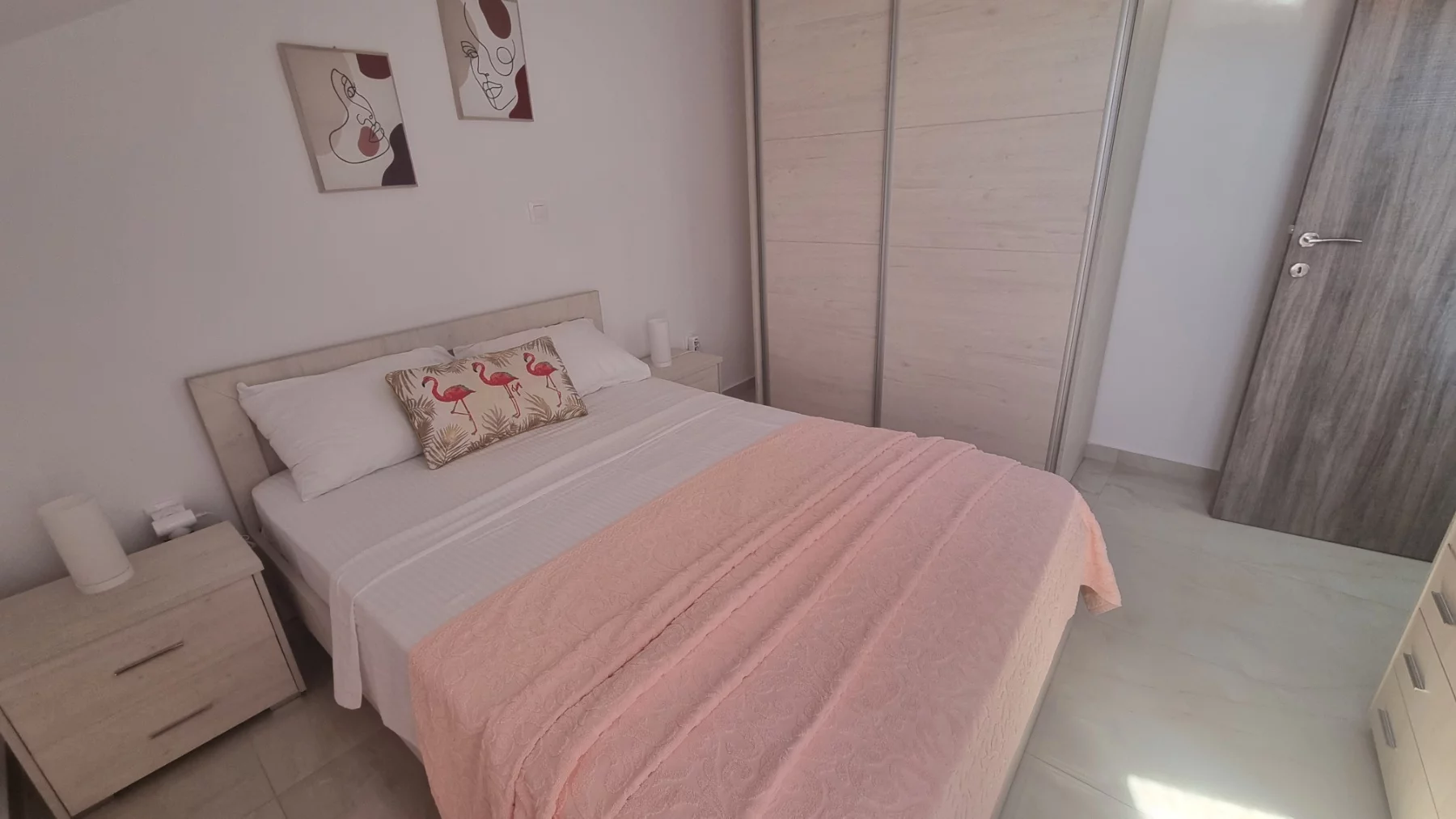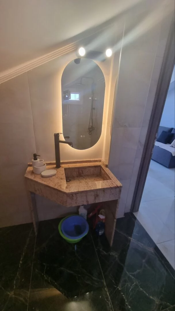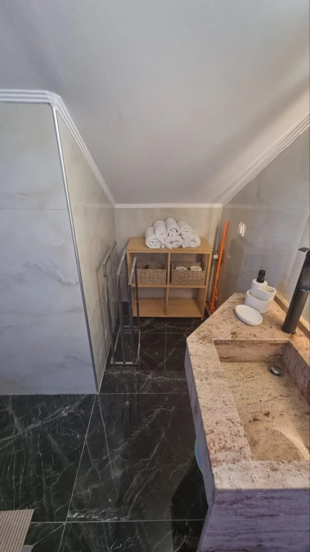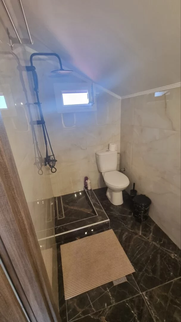 - Apartmani se nalaze na trećem spratu u novijoj zgradi, u potkrovlju tipa penthouse. Apartman je potpuno nov, veličine 45m2 sa kujnom, kupatilom, dnevnim boravkom, jednom spavaćom sobom i terasom. Vila može da primi najviše 6 osoba.