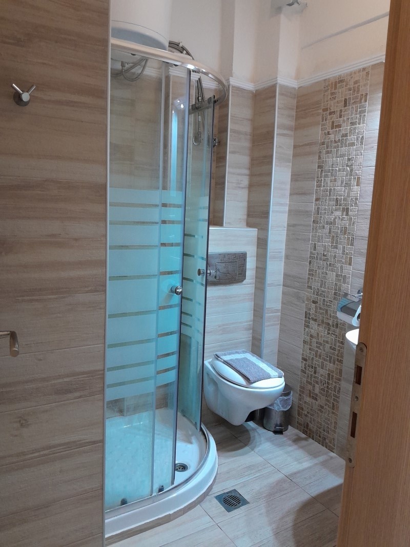 - Ova vila ima odličnu poziciju, nalazi se nedaleko od glavnog trga i u centru svih dešavanja u letovalištu. U blizini vile je veliki broj taverni, kafića, prodavnica, picerija… U ovoj vili imamo 1/5 apartman, koji je veoma komforan i kompletno opremljen: kuhinja sa šporetom i velikim frižiderom, klima uredjaj, LCD, kupatilo sa toaletom i tuš kadom, terasa sa garniturom sa sedenje. Preporučujemo ga kako porodicima sa decom, tako i mladima.