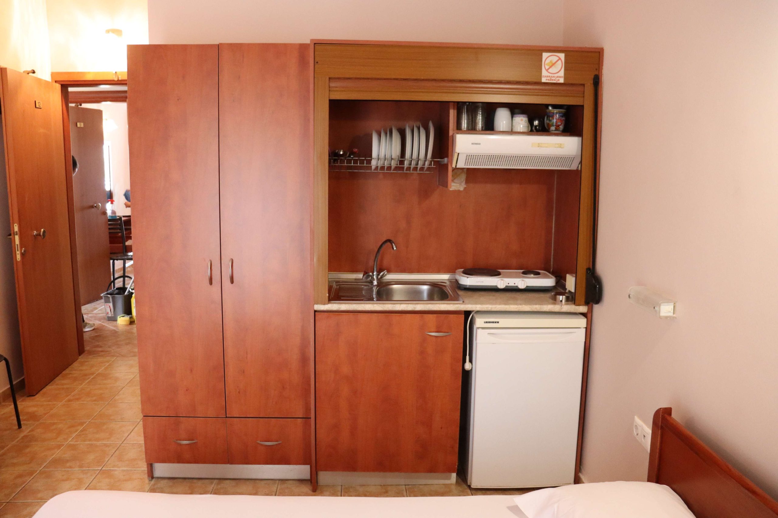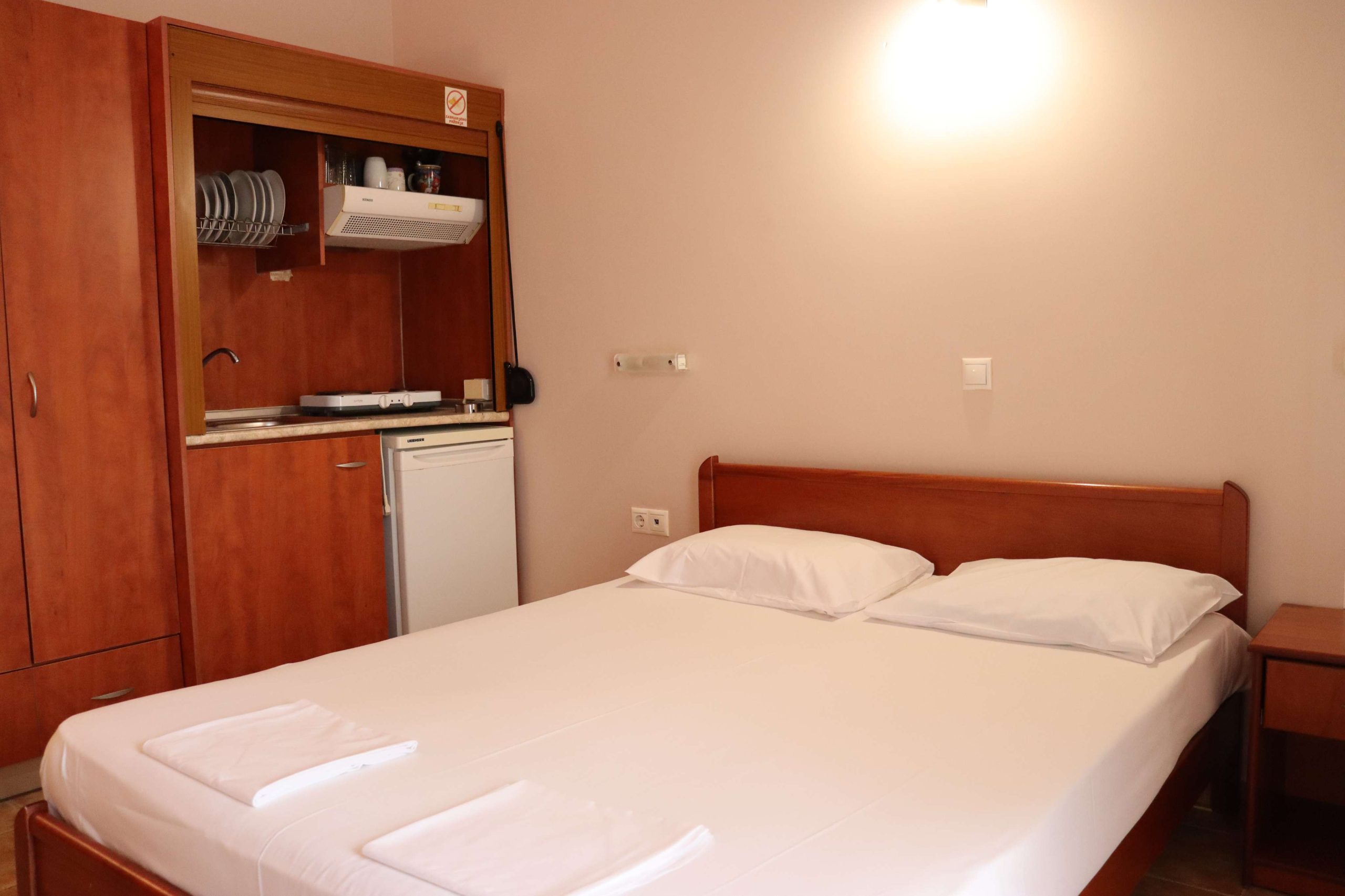 poseduju tende na terasama . Ne posebno velike smeštajne jedinice, okvirne površine studia (17–20 m²) i apartmana (36 m²), ističu se urednošću i elegancijom, funkcionalne su i standardno opremljene sa TV, klima uređajima . U objektu nema peškira. - Internet: Objekat poseduje besplatan Wi-Fi, sa signalom dostupnim u većini smeštajnih jedinica.