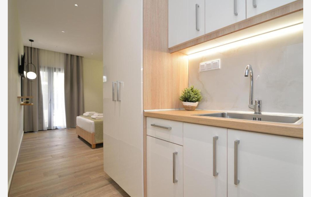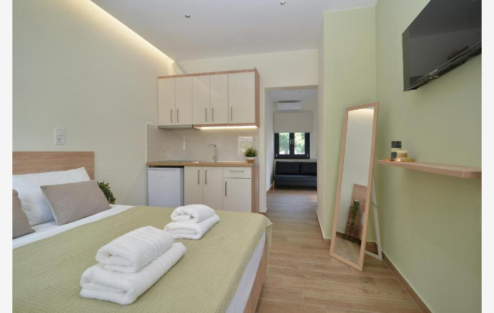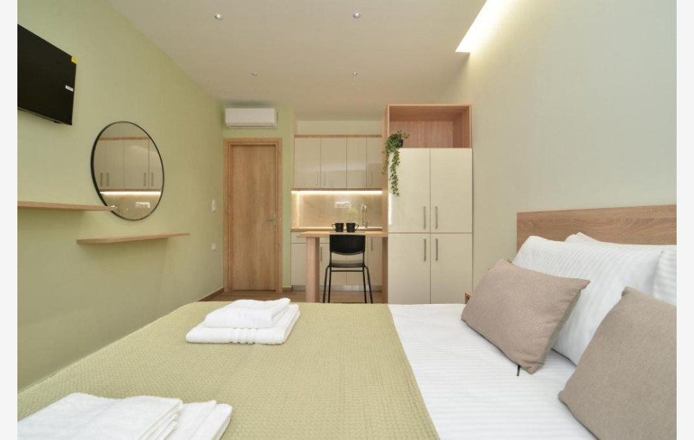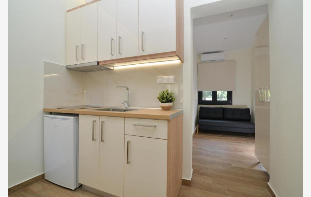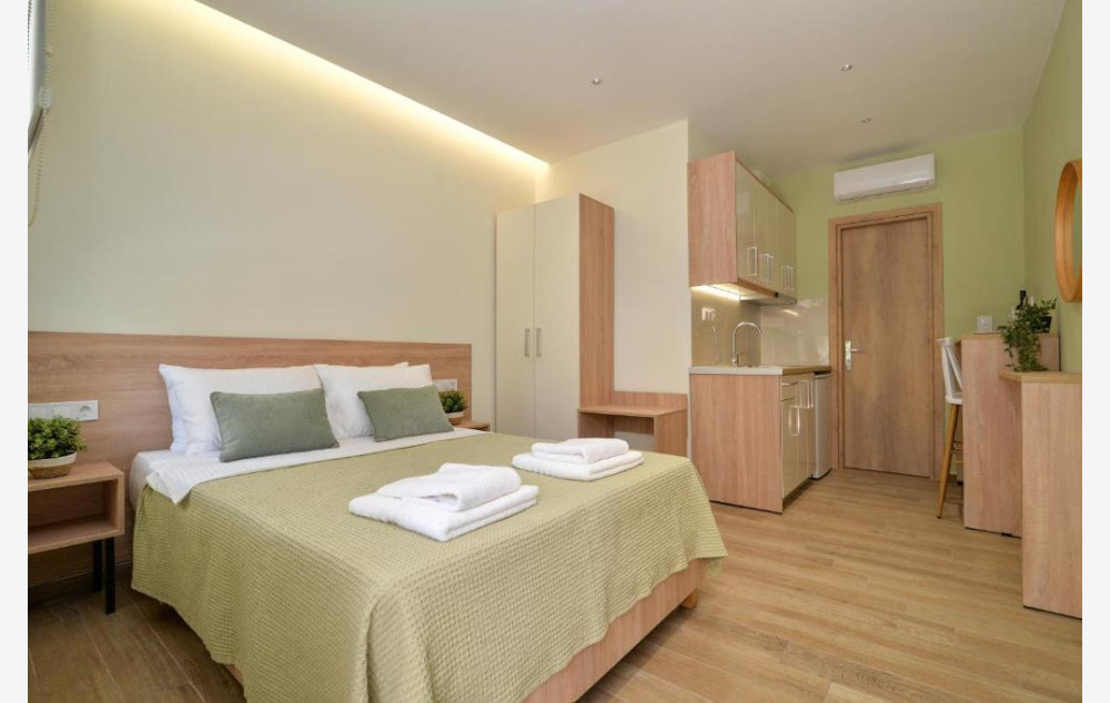 - U ponudi su luksuzno opremljeni dvokrevetni, trokrevetni i četvorokrevetni studiji koji su smešteni u blago izdignutom prizemlju i na prvom spratu.