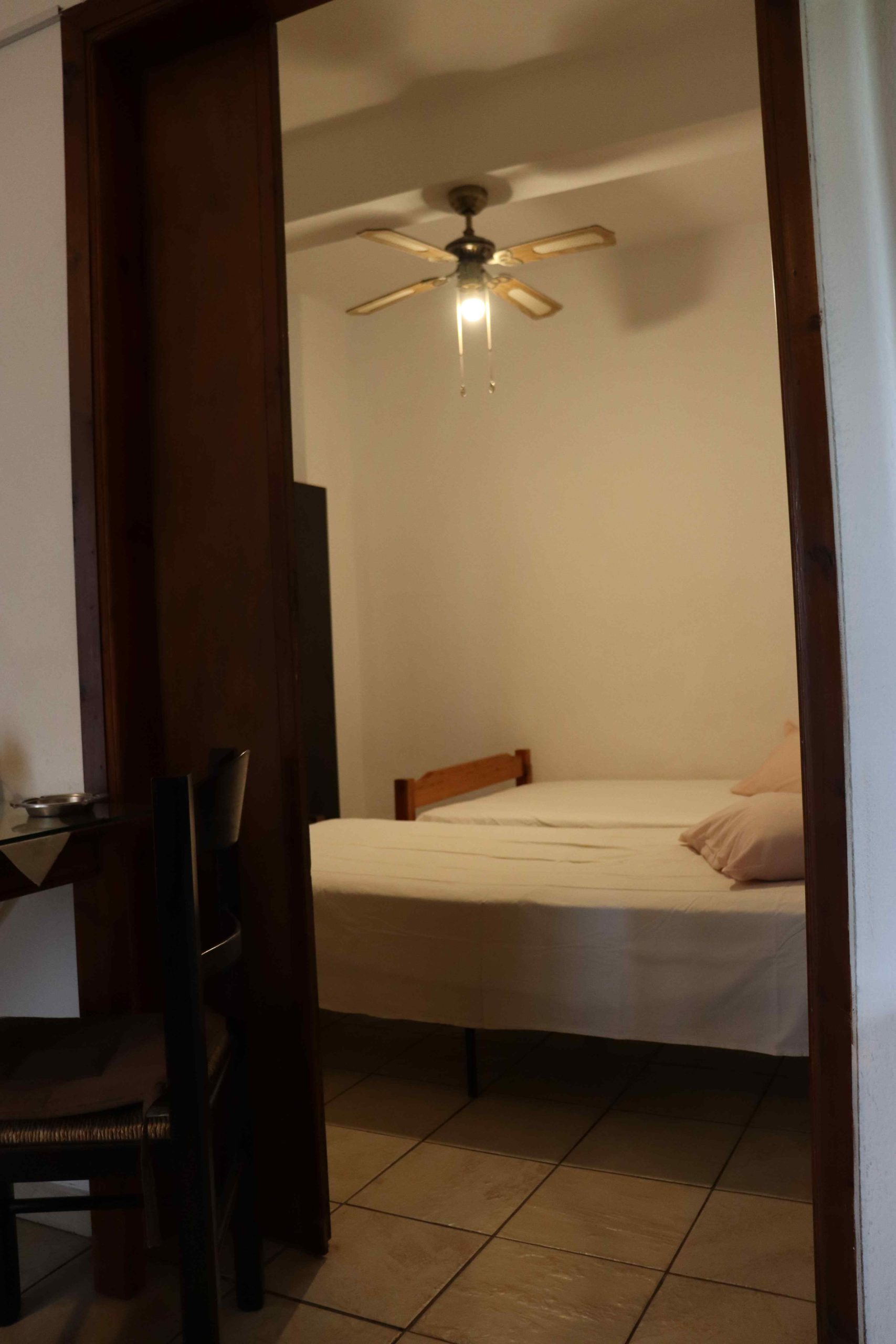- 1/4 TD apartman: široki ležaj u sobi a široki i standardni u pregrađenom delu trpezarije, terasa gleda na dvorište (moguć gratis smeštaj za petu osobu)