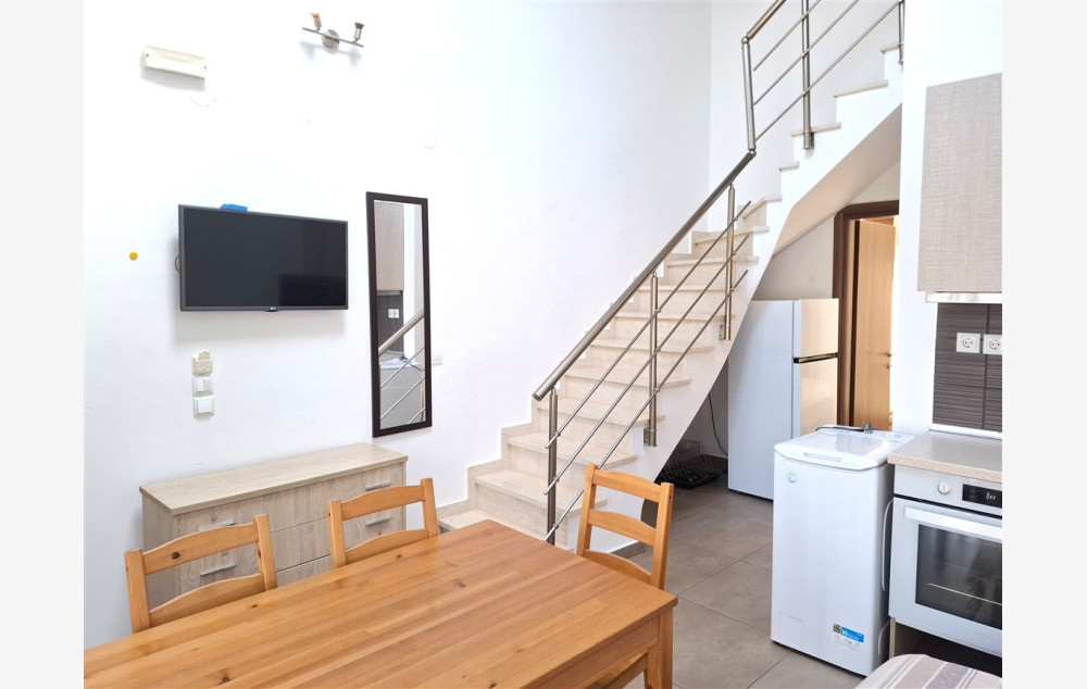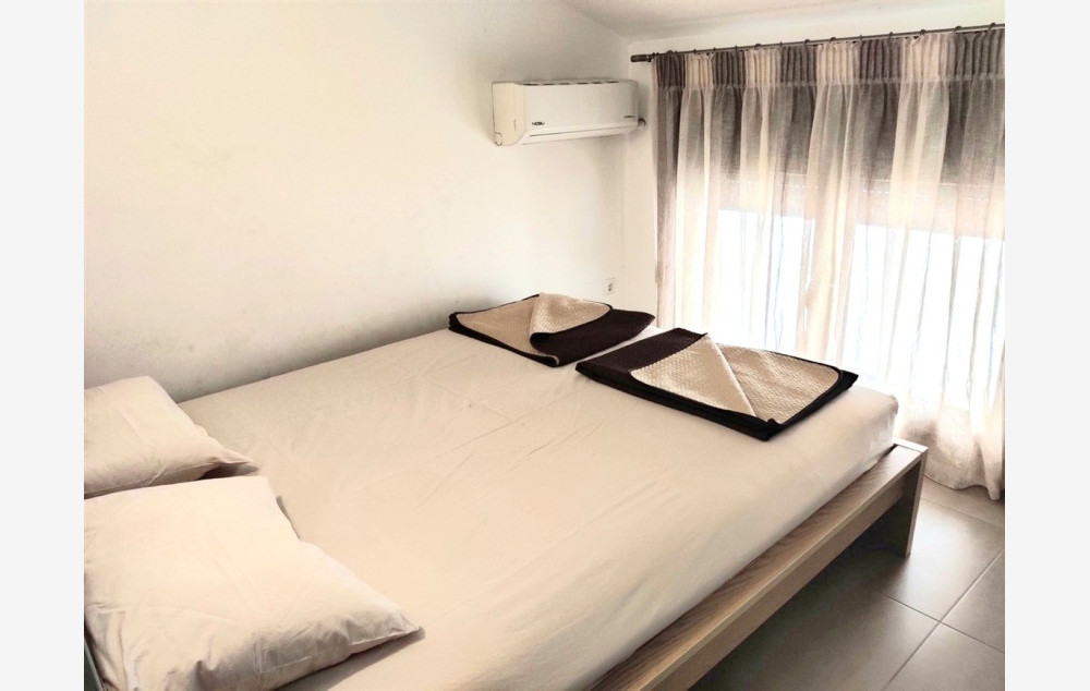 - U prizemlju apartmana su kuhinja, kupatilo i jedna spavaća soba dok je na gornjem nivou druga spavaća soba. Svaka smeštajna jedinica poseduje terasu sa bočnim pogledom na more (ispred ulaza u apartman), deo zadnjeg dvorišta na koji se izlazi iz spavaće sobe, TV i 2 klima uređaja čije je korišćenje uključeno u cenu najma apartmana.