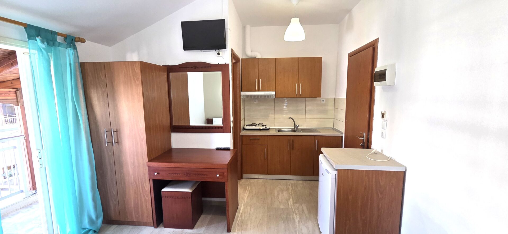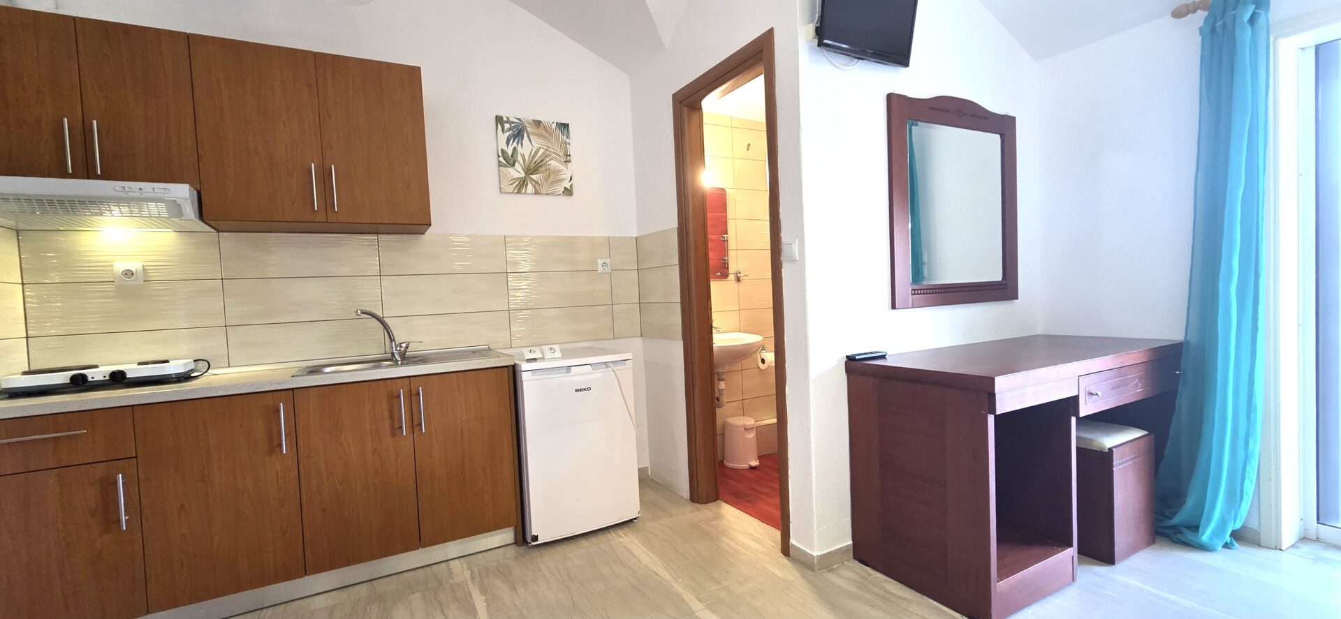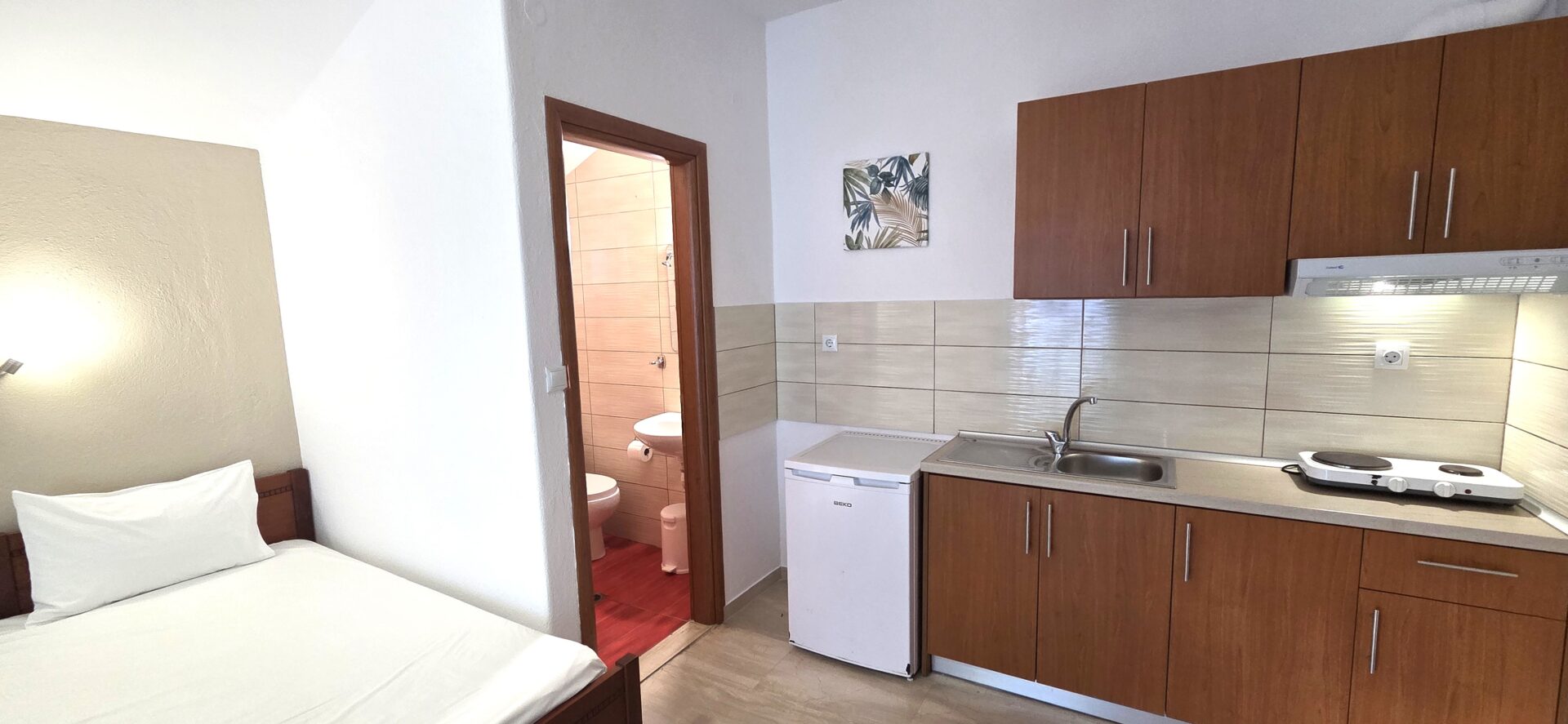 - 1/2 studio – u jednoj prostoriji čajna kuhinja i bračni ležaj ili dva obična ležaja