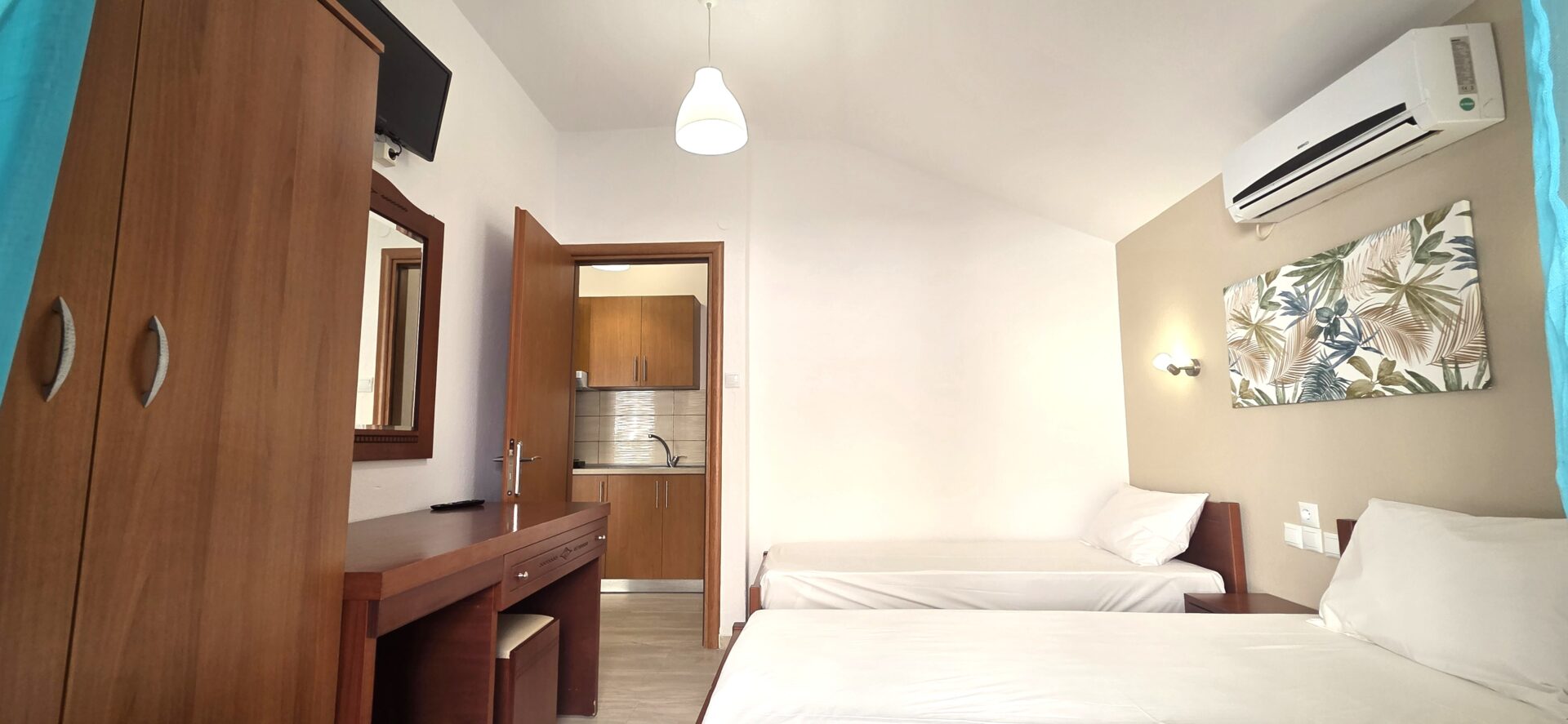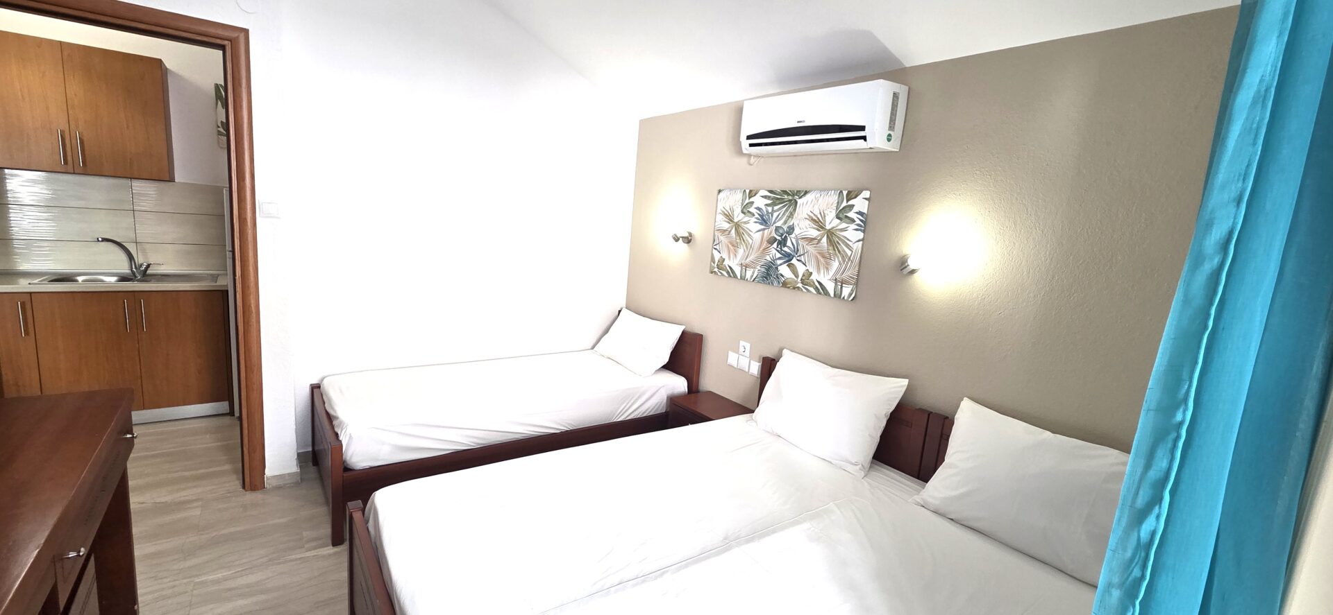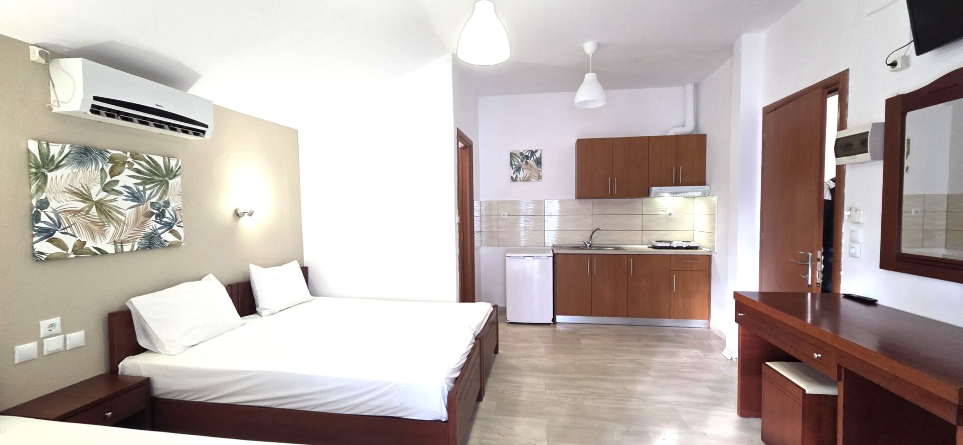 - 1/2 studio – u jednoj prostoriji čajna kuhinja i bračni ležaj ili dva obična ležaja