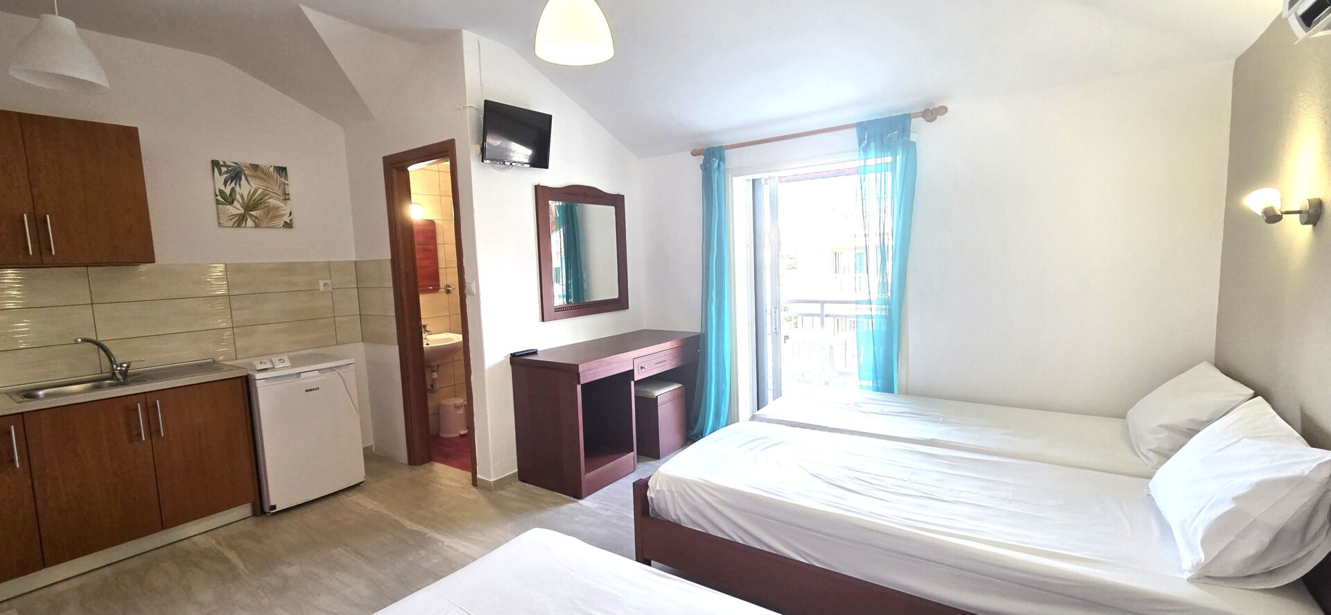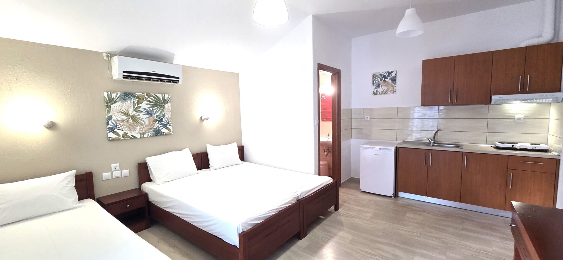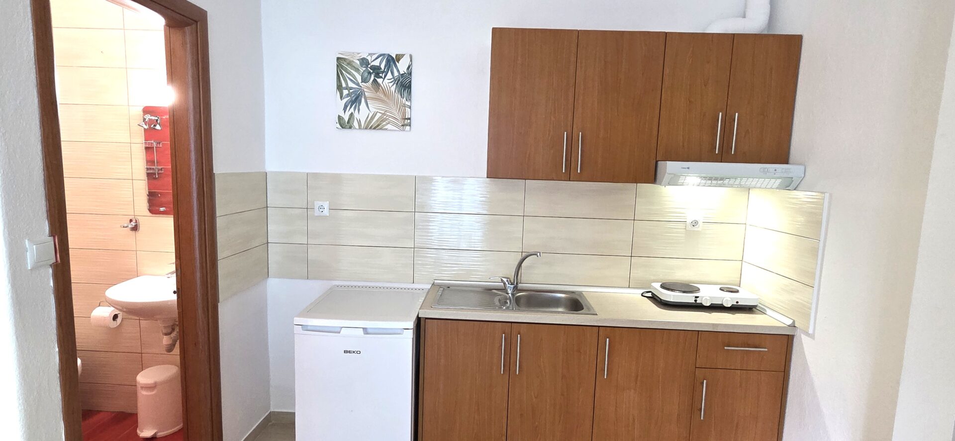 1/3 studio – u jednoj prostoriji čajna kuhinja, jedan bračni i jedan običan ležaj ili tri obična ležaja