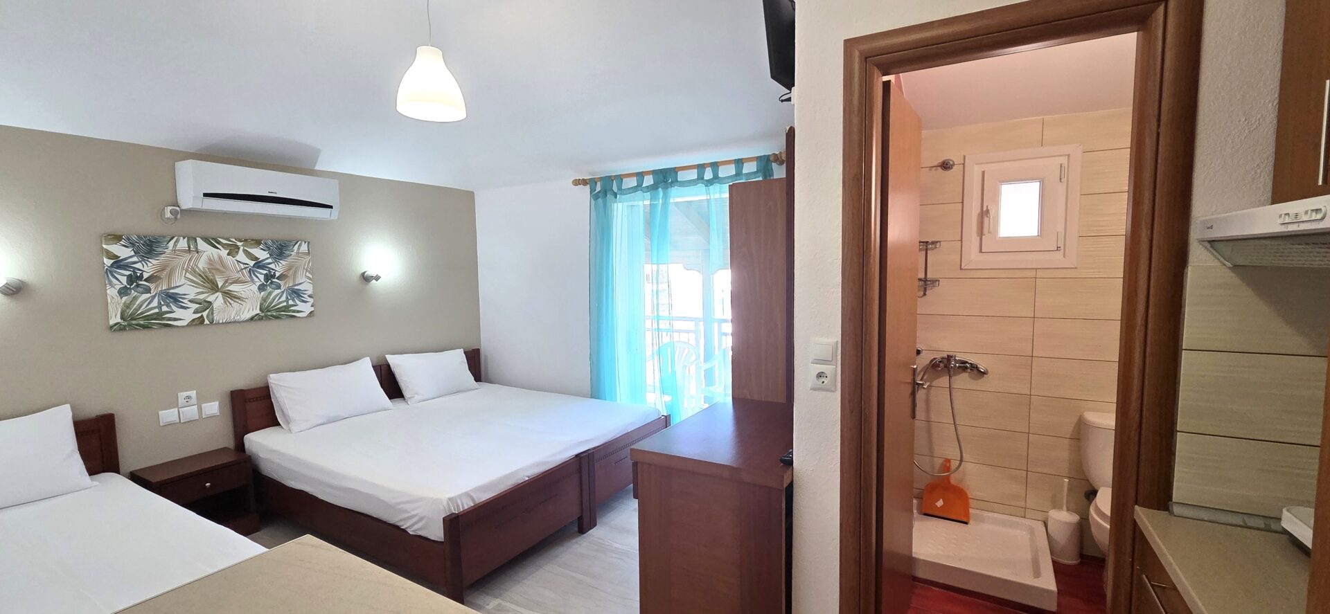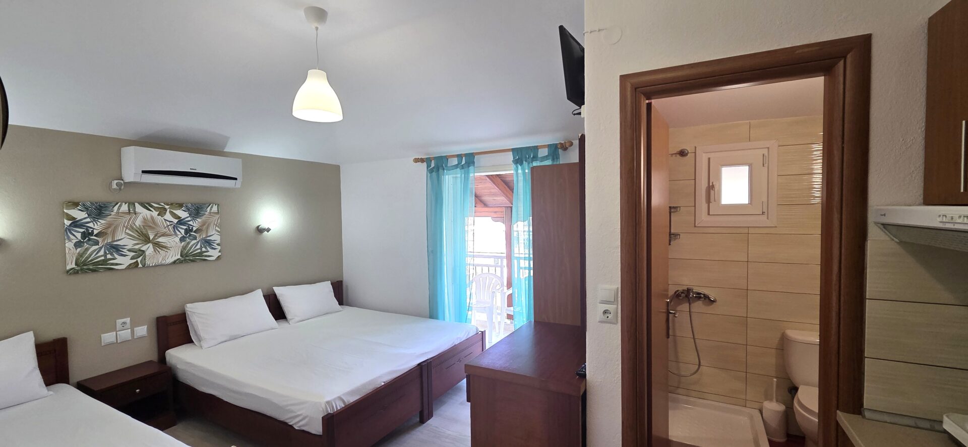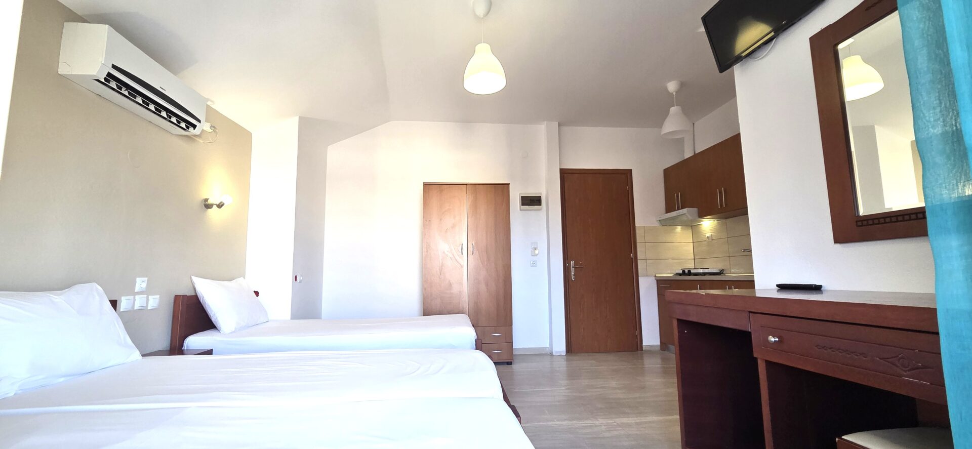 1/3 studio – u jednoj prostoriji čajna kuhinja, jedan bračni i jedan običan ležaj ili tri obična ležaja
