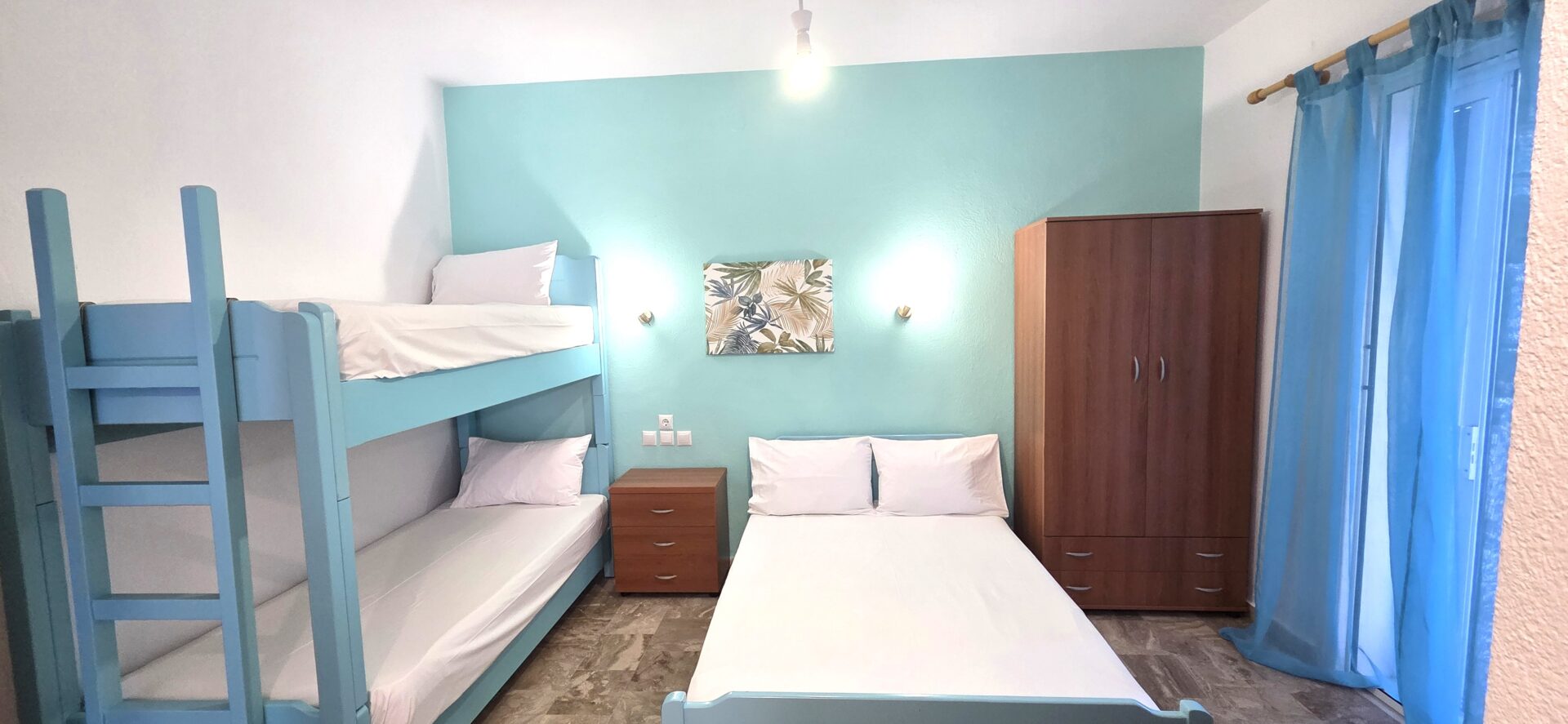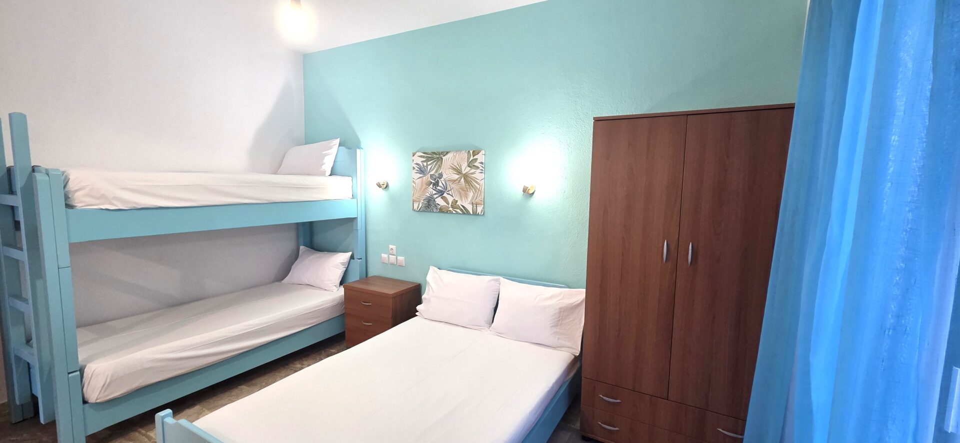 1/4 studio – u jednoj prostoriji čajna kuhinja, bračni ležaj i kreveti na sprat