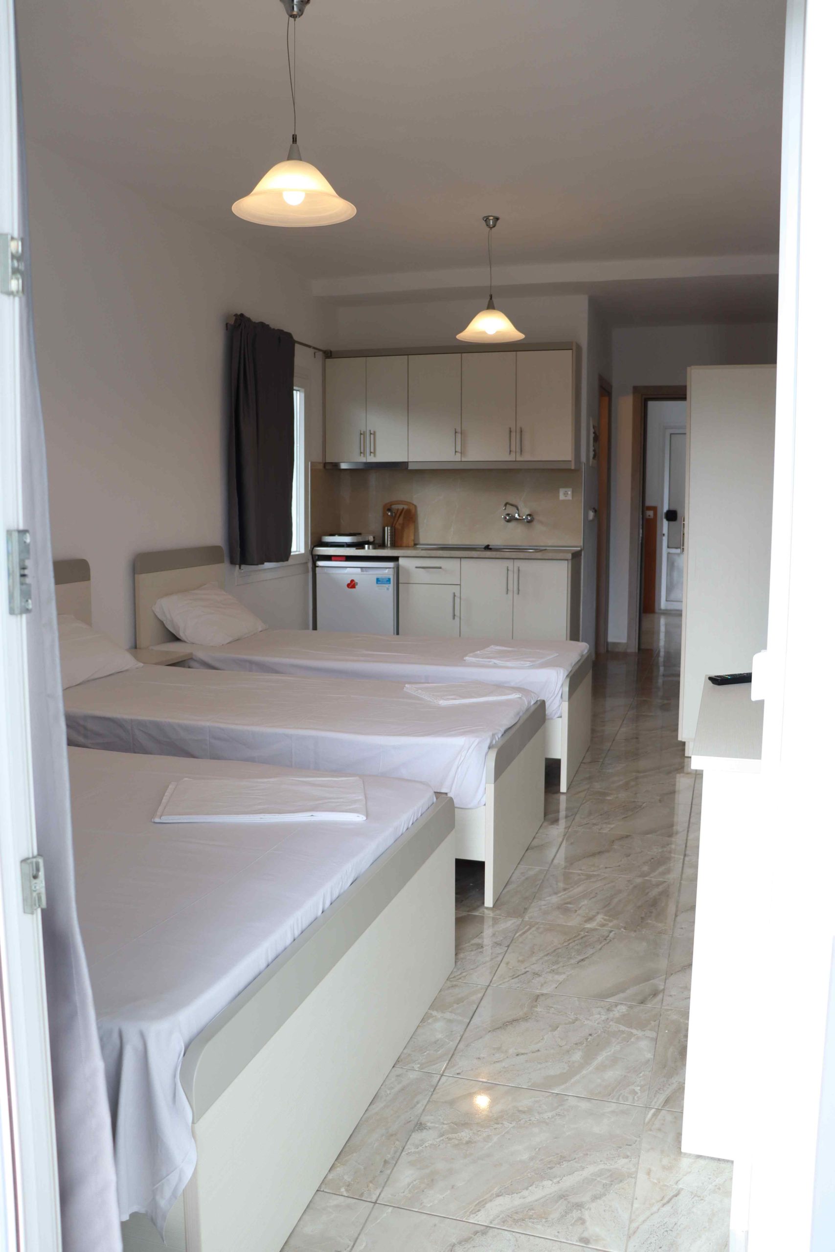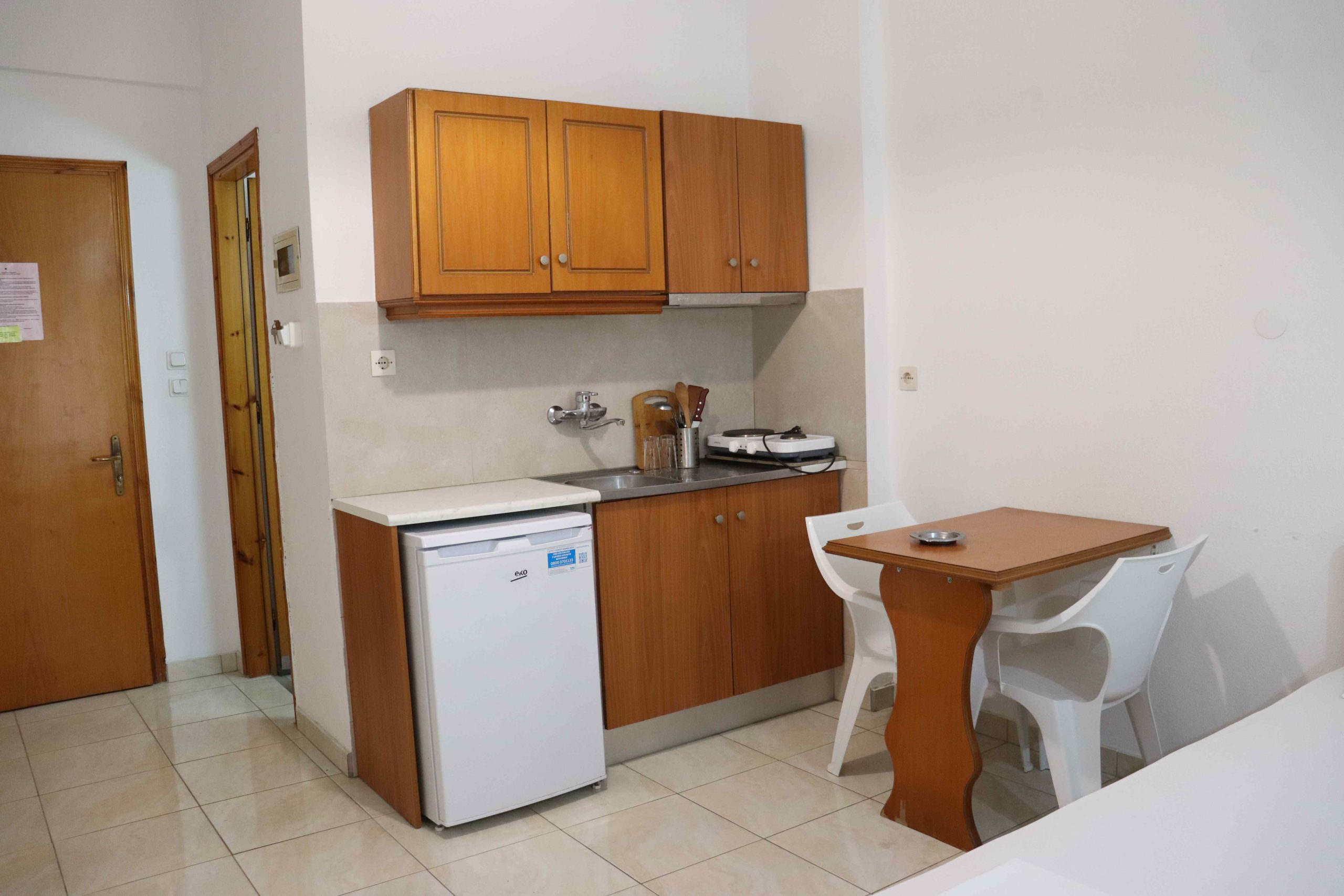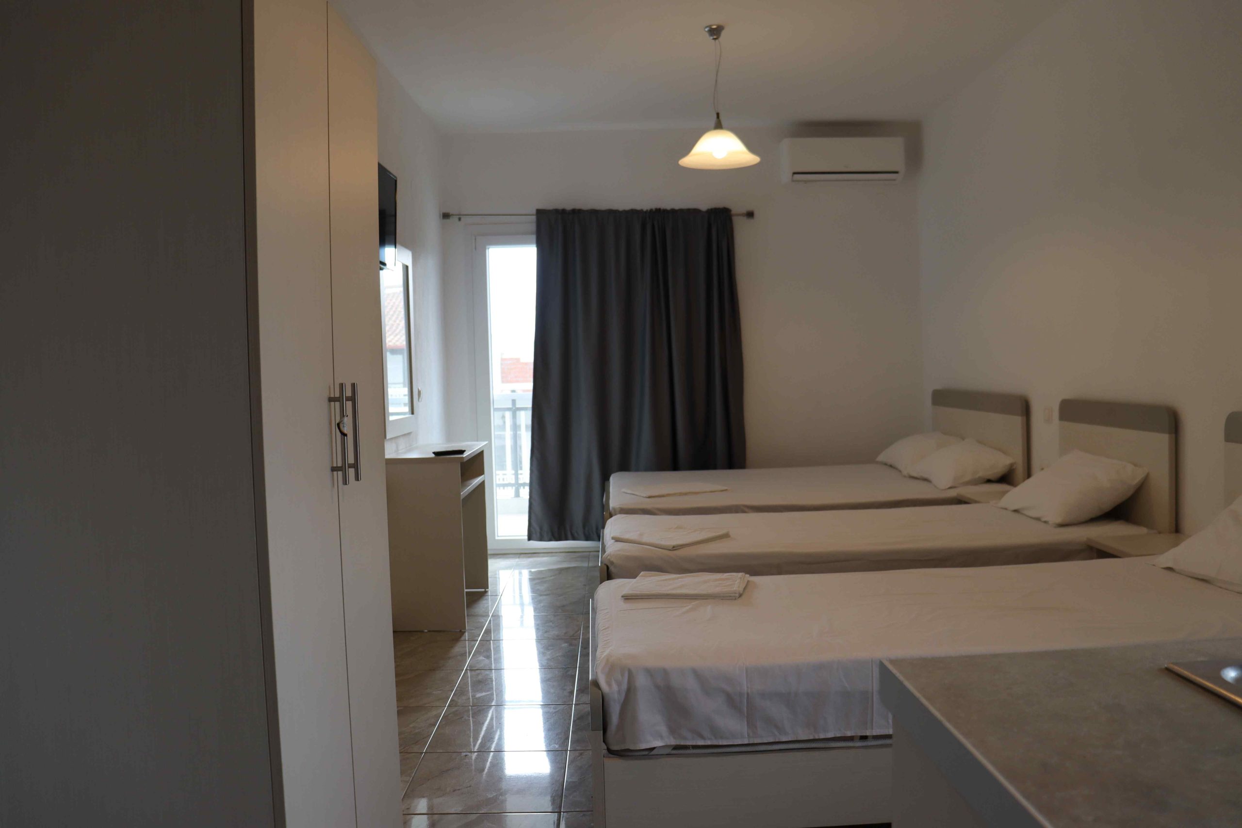 - Sadržaji: Prostrana studia, okvirne površine oko 24 m² smeštana su na prizemlju, prvom, drugom i trećem spratu. Jednostavno i funkcionalno opremljena, sa TV i klima uređajima, a sve smeštajne jedinice, na nedavno završenom trećem spratu, imaju moderna kupatila i opremljena su novim nameštajem . Terase gledaju prema ulici ili prema dvorištu kuće i susednom objektu .