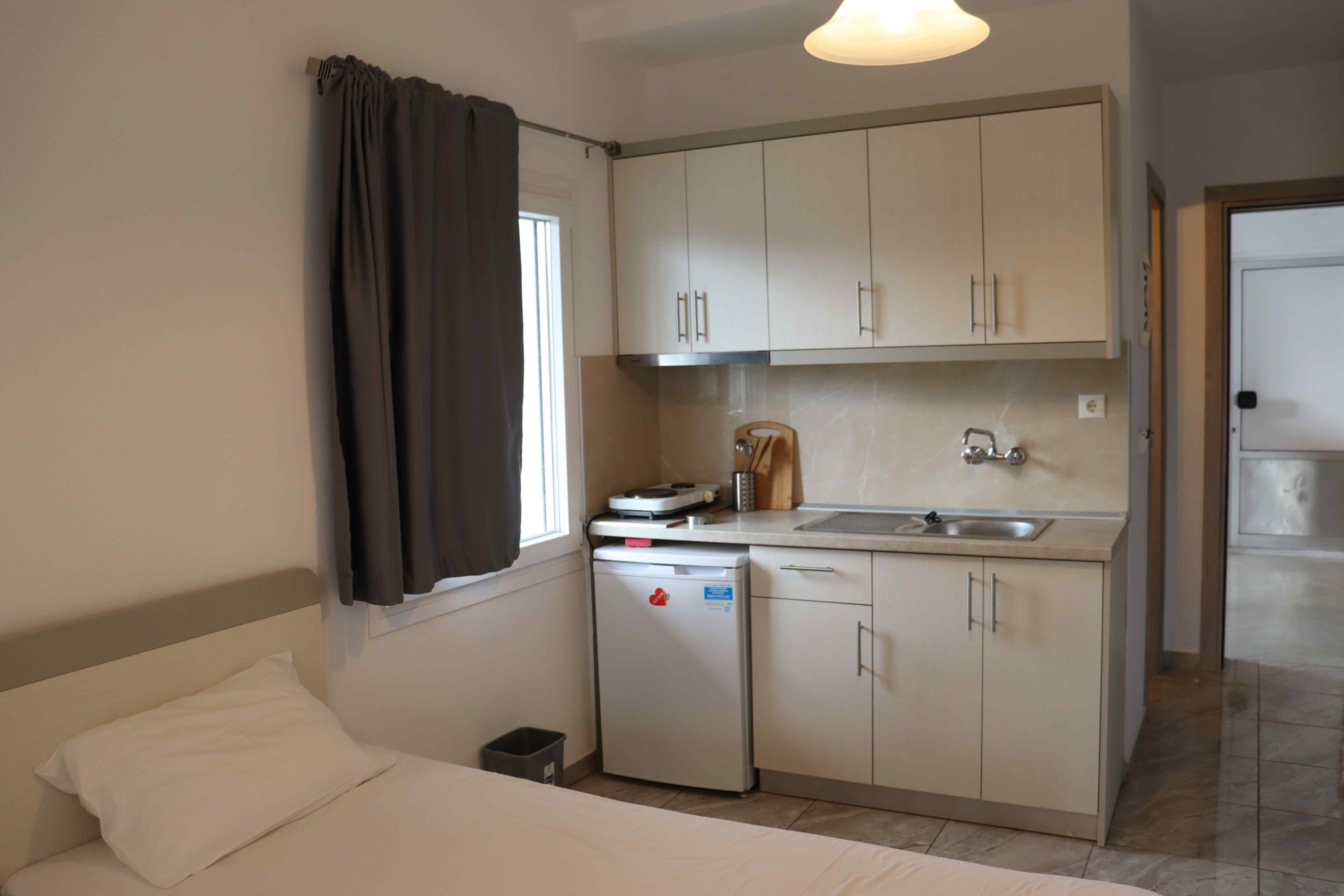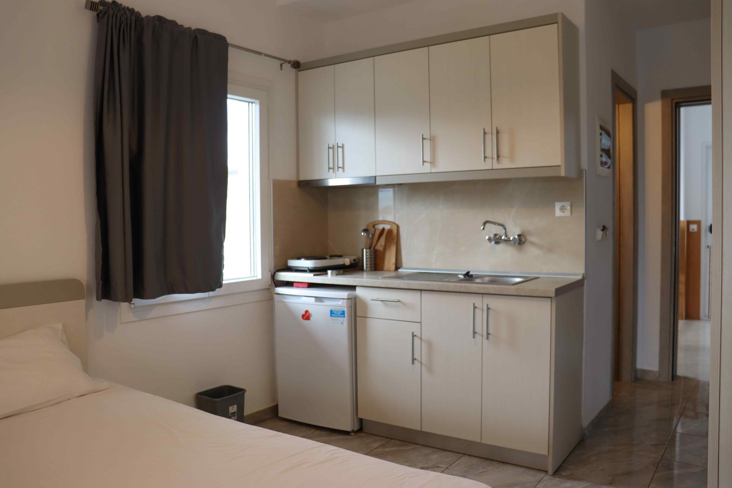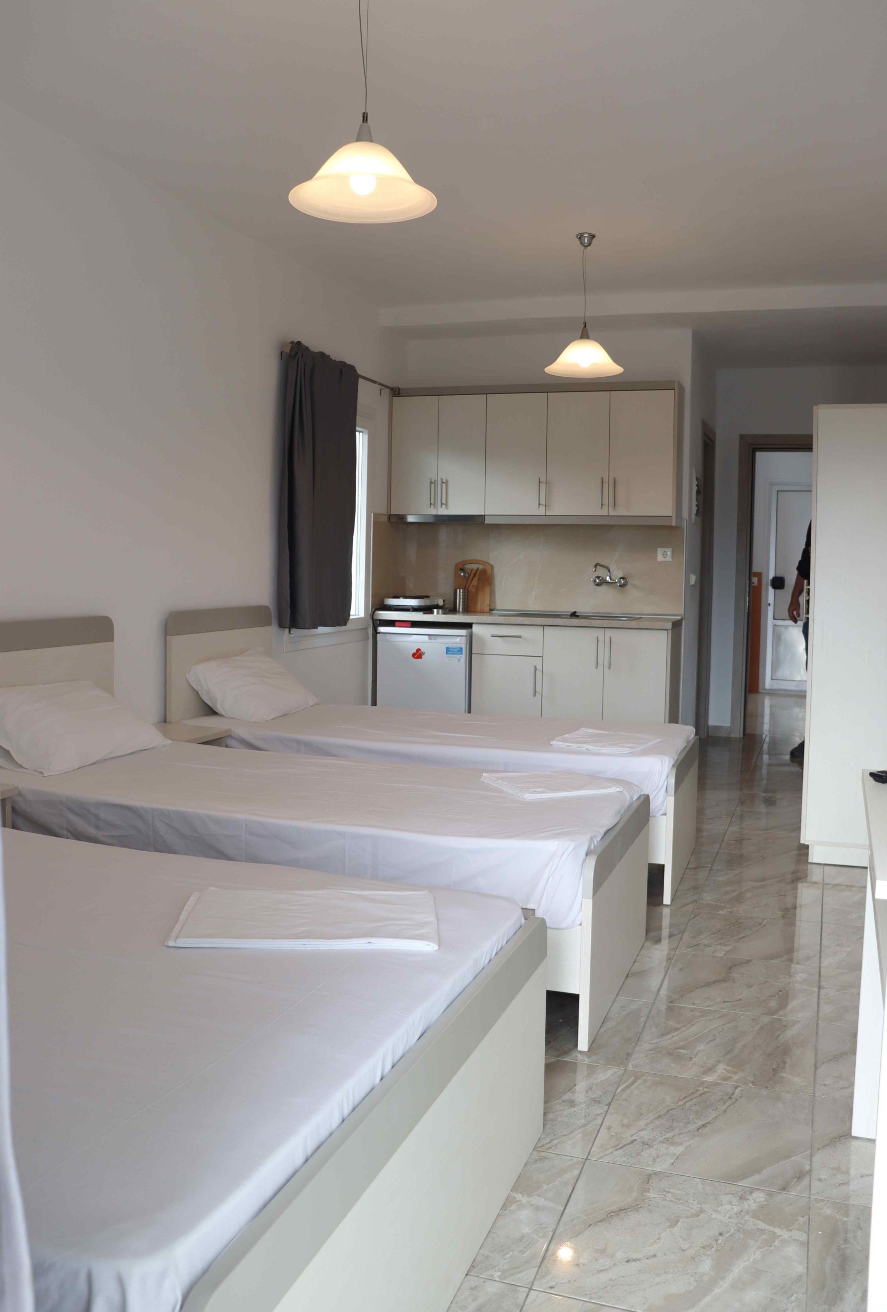 - Sadržaji: Prostrana studia, okvirne površine oko 24 m² smeštana su na prizemlju, prvom, drugom i trećem spratu. Jednostavno i funkcionalno opremljena, sa TV i klima uređajima, a sve smeštajne jedinice, na nedavno završenom trećem spratu, imaju moderna kupatila i opremljena su novim nameštajem . Terase gledaju prema ulici ili prema dvorištu kuće i susednom objektu .