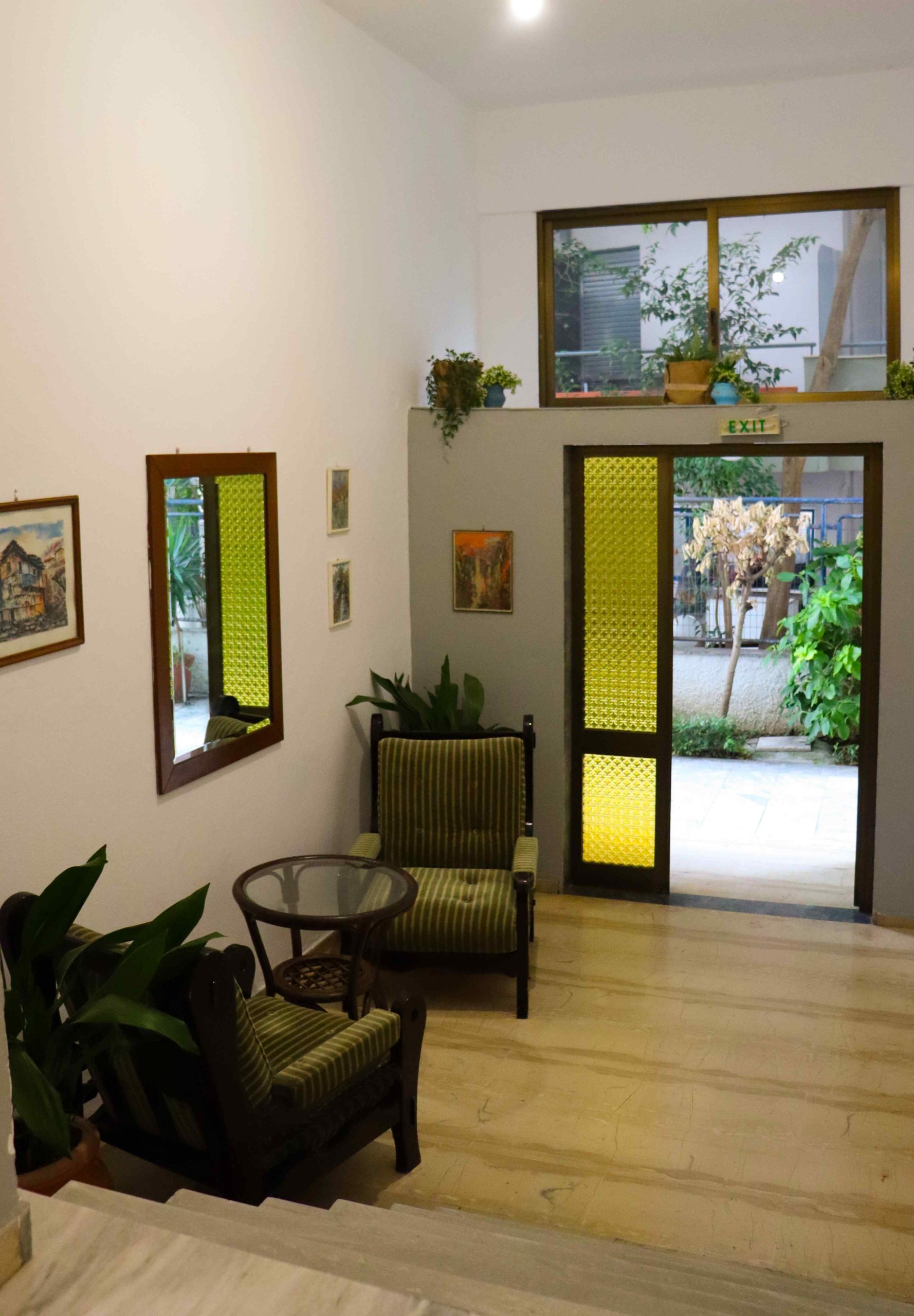 - Sadržaji: Studia se nalaze na visokom parteru, prvom i drugom spratu, okvirne površine 20–28 m², pružaju komforan boravak za dve do četiri osobe. Standardno su opremljena, sa TV, klima uređajima, natkrivenim terasama, sa kojih se može, zavisno od položaja, pružati pogled na dvorište, crkvu ili more. Studia na drugom spratu, broj 13,14,17 i 18 imaju kupatila, mnogo manjih dimenzija od standarda, označena sa MK i imaju nižu cenu.