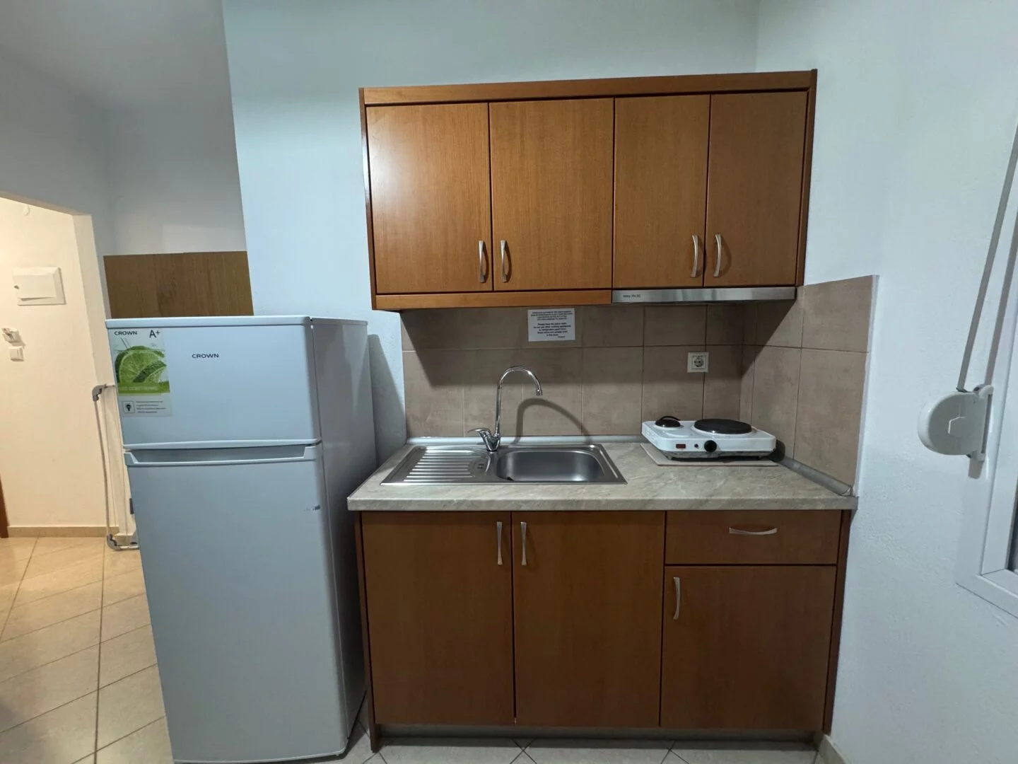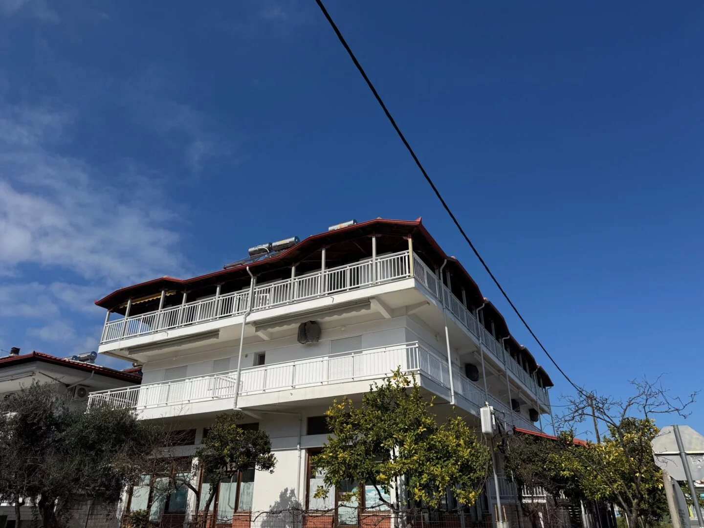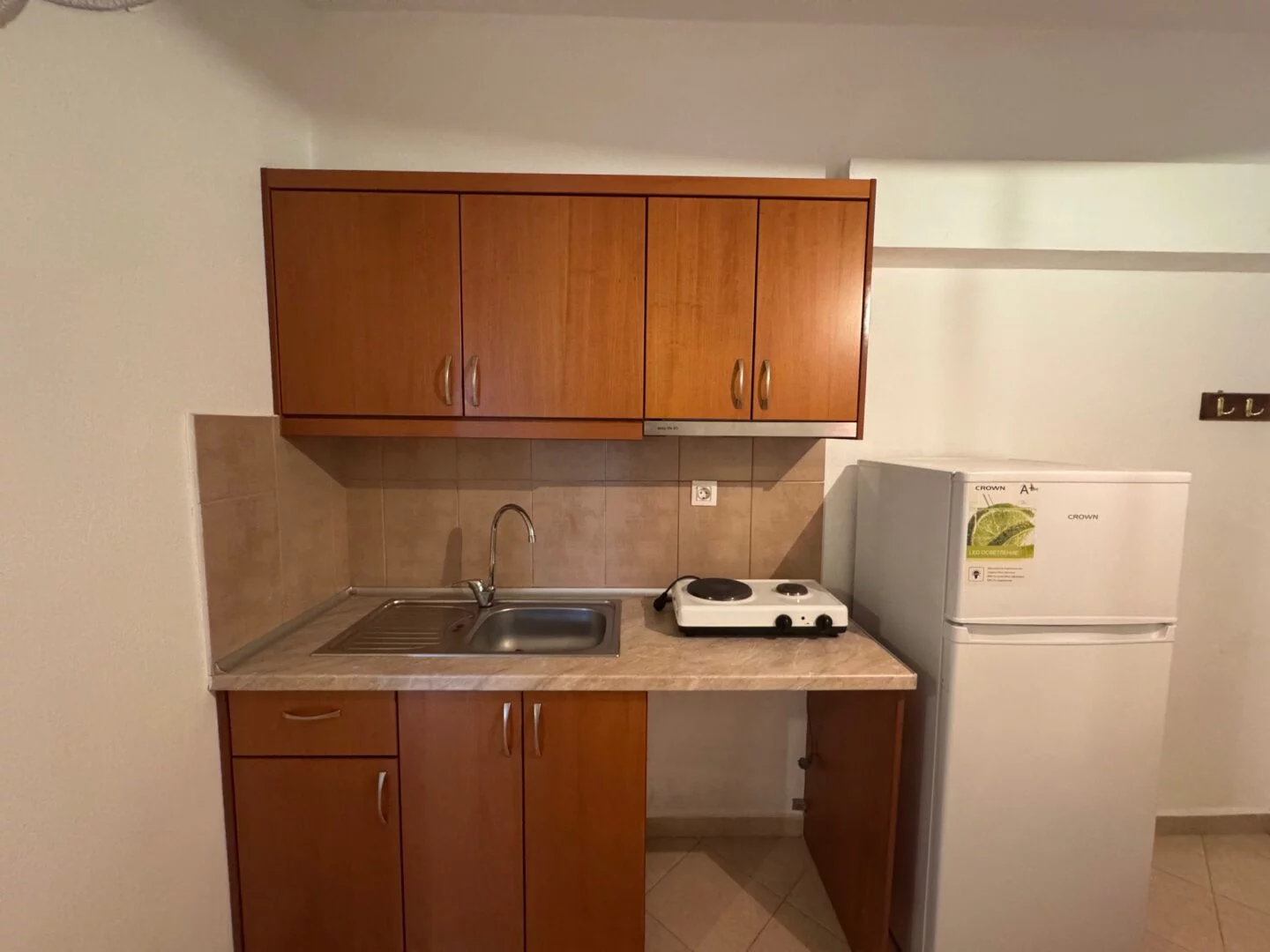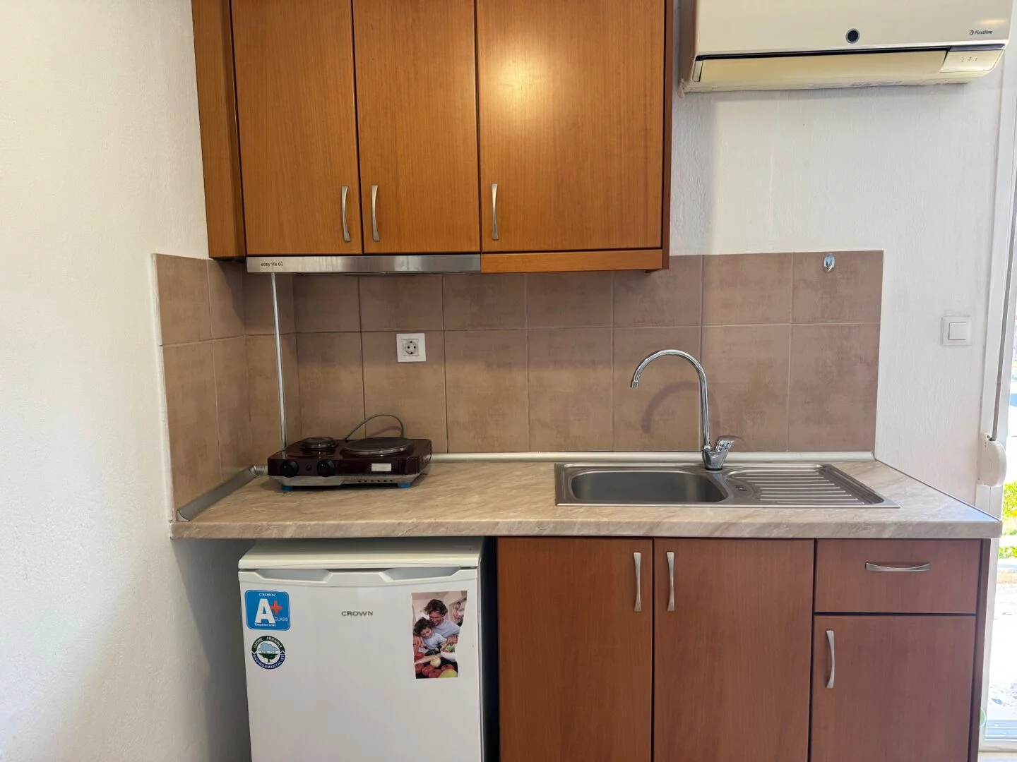 - Studiji i apartmani imaju opremljenu kuhinju i sopstveno kupatilo. Korišćenje klime je moguće uz doplatu (5€ dnevno).