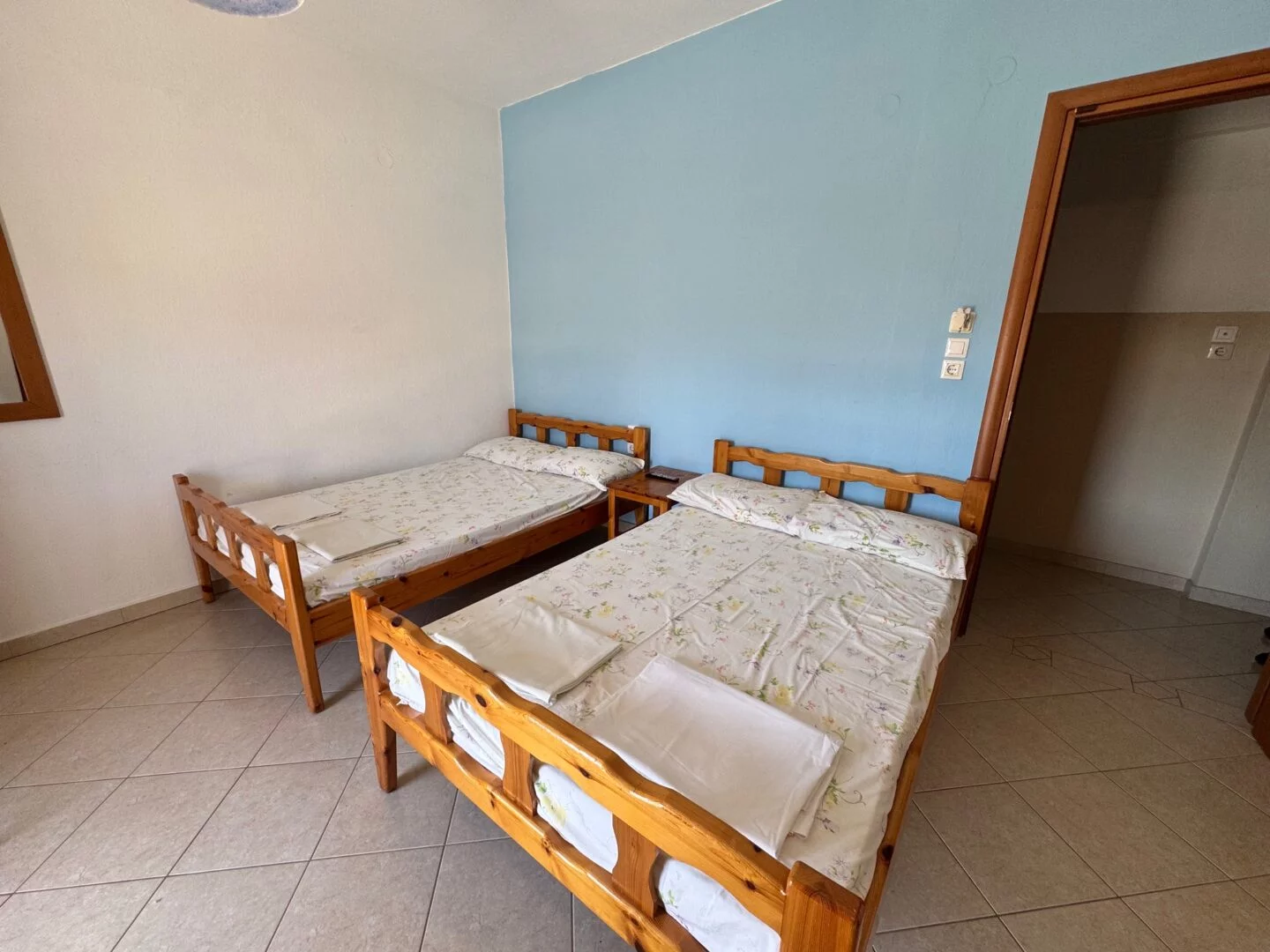 - Dimenzije ležaja u Grčkoj se razlikuju od naših standarda. Grčki standard za normalni ležaj je 185cm-200cm sa 75-90cm, a bračni ležaj (dve osobe) 185–200cm sa 120–155cm. Pomoćni ležaj u svim objektima u Grčkoj je na sklapanje, drvene ili metalne konstrukcije ili fotelje na rasklapanje, manjih dimenzija.