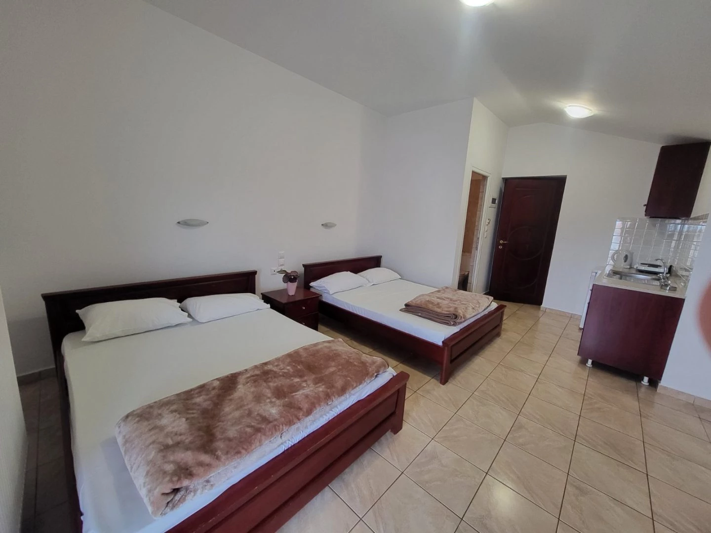 - Svaki studio poseduje potpuno opremljenu kuhinju i prostrane terase. Korišćenje klima uređaja se naplaćuje 6e po danu, cena je podložna promeni. Zamena posteljina je posle petog dana boravka. Za poslednji dan poravka obezbeđen je prostor za odlaganje prtljaga.