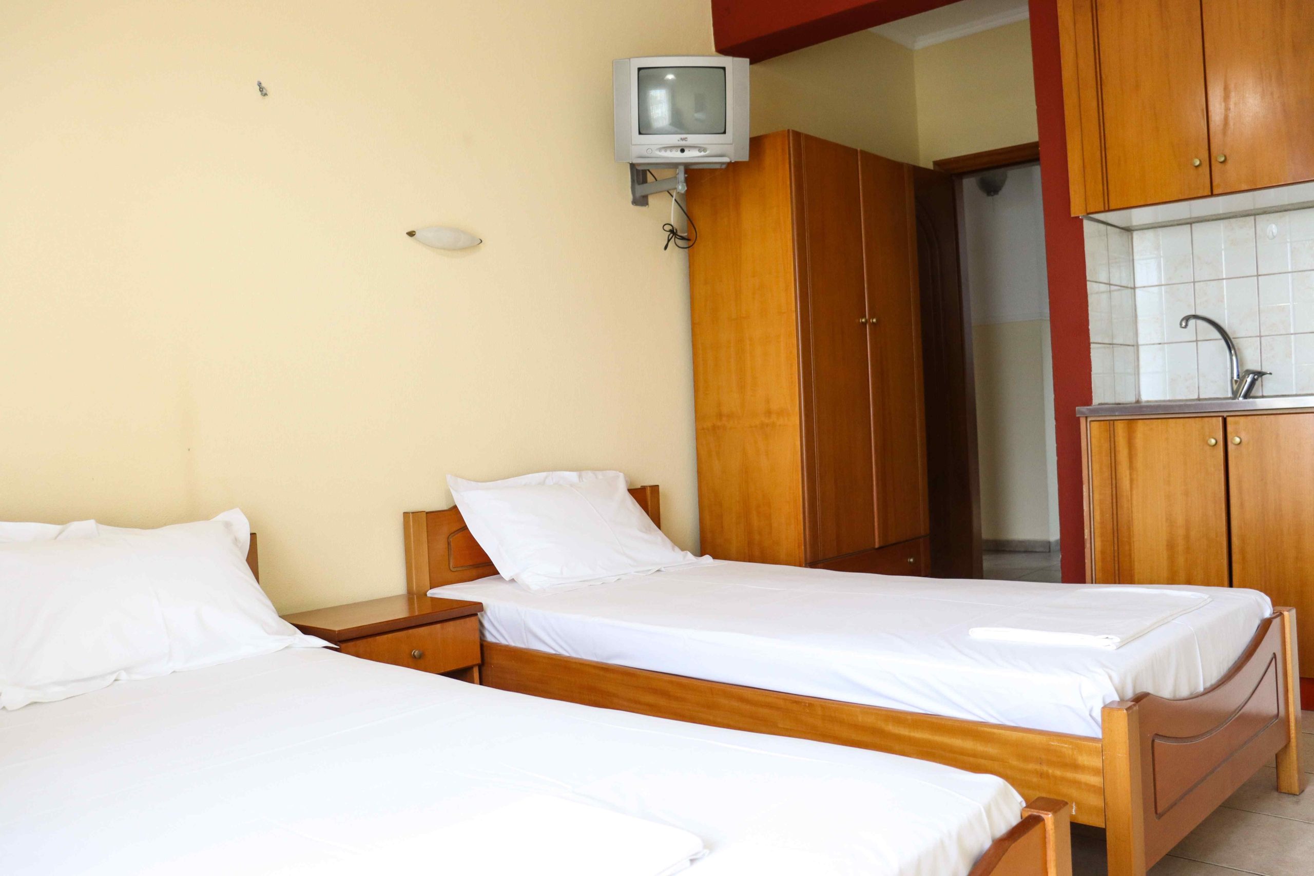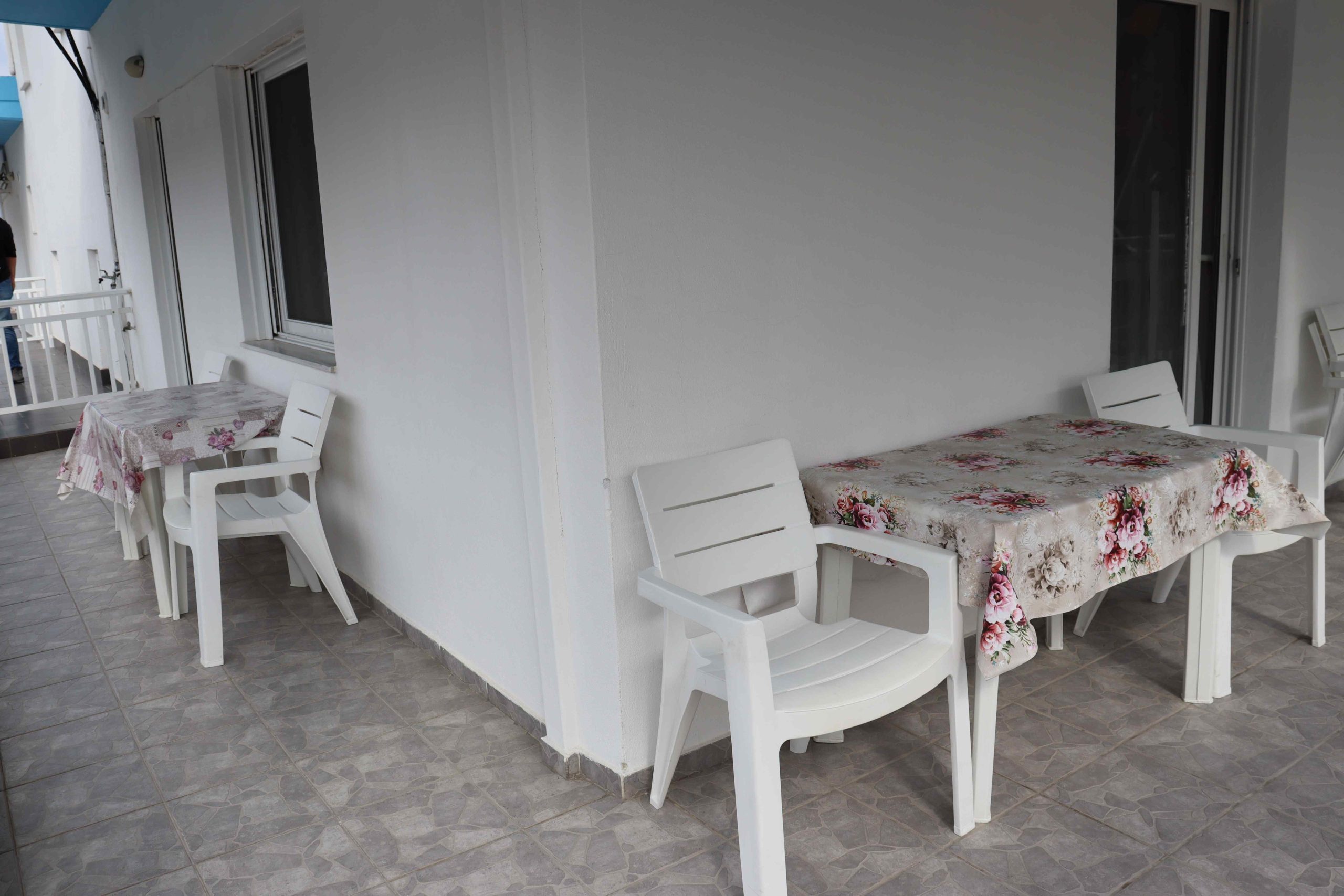 - Sadržaji: Studia su manjih površina (16-18 m²), dok su apartmani prostraniji – oko 35 m², sa dve spavaće sobe i trpezarijom,smešteni su na prvom spratu . Sve smeštajne jedinice, odlikuje izuzetna čistoća, lepo su uređene, funkcionalne, standardno opremljene sa TV i klima uređajem. Kako su studia manjih dimenzija, terase služe kao letnje trpezarije, a sa njih se pruža direktan ili bočni pogled na more. Objekat ima dvorište se natkrivenom terasom i prostorom za druženje.
