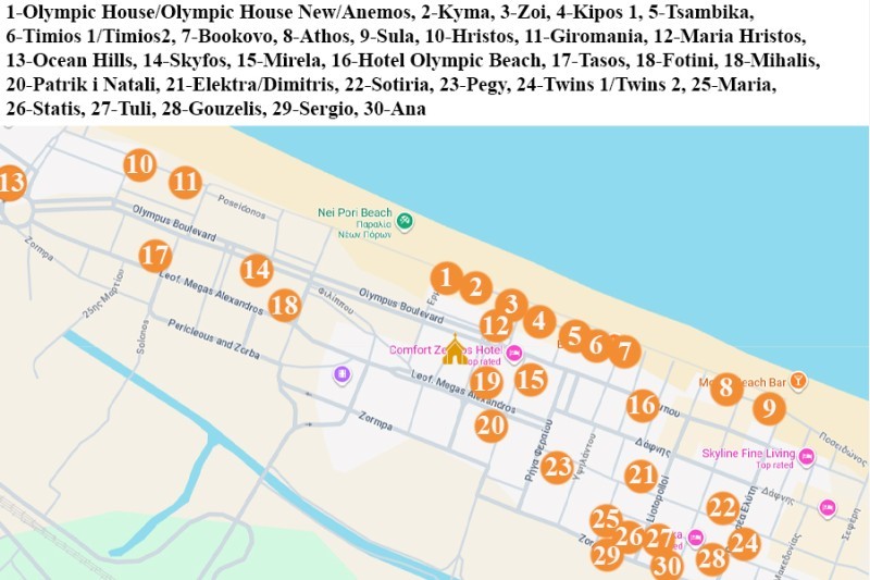 - Napomena: Kategorizacije smeštajnih objekata u katalogu (hoteli i vile), izvorno su preuzete od vlasnika istih, te kao takve ispunjavaju uslove po kriterijumima nacionalne turističke organizacije Grčke – EOT.