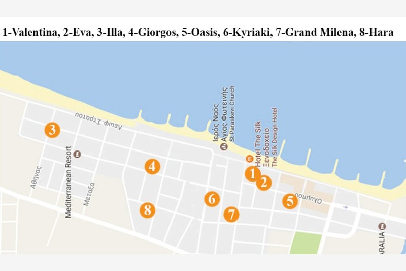- Napomena: Kategorizacije smeštajnih objekata u katalogu (hoteli i vile), izvorno su preuzete od vlasnika istih, te kao takve ispunjavaju uslove po kriterijumima nacionalne turističke organizacije Grčke – EOT.