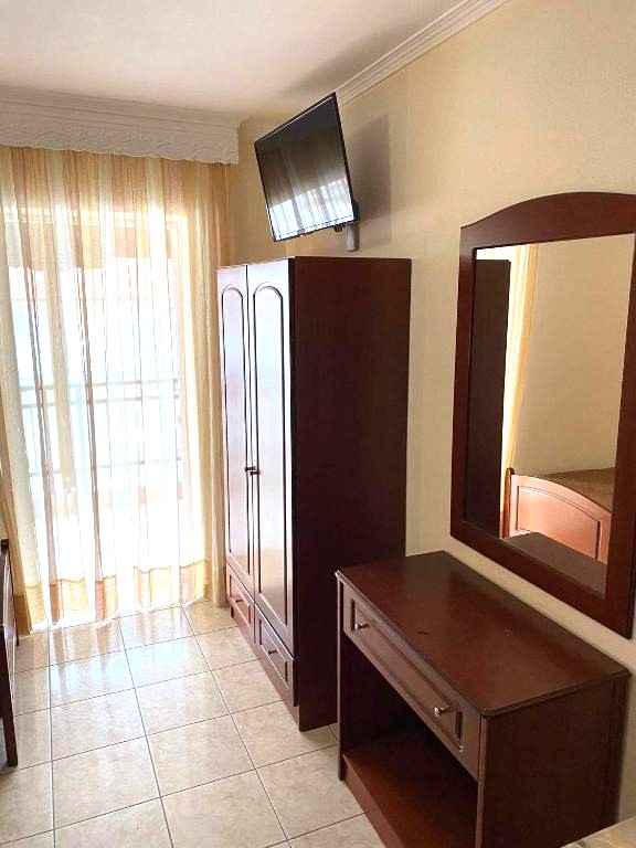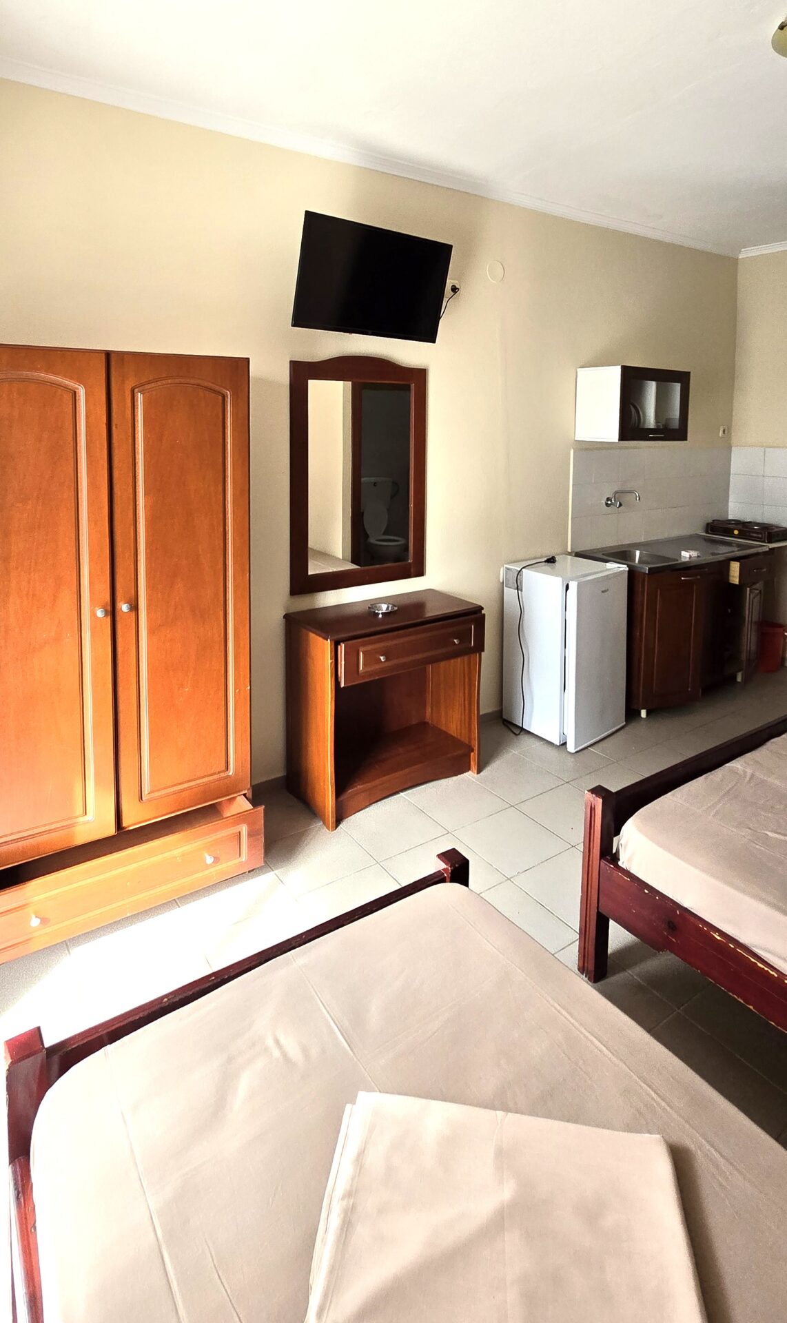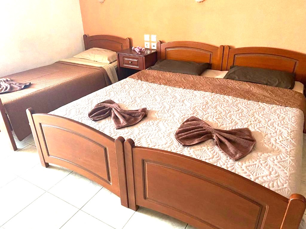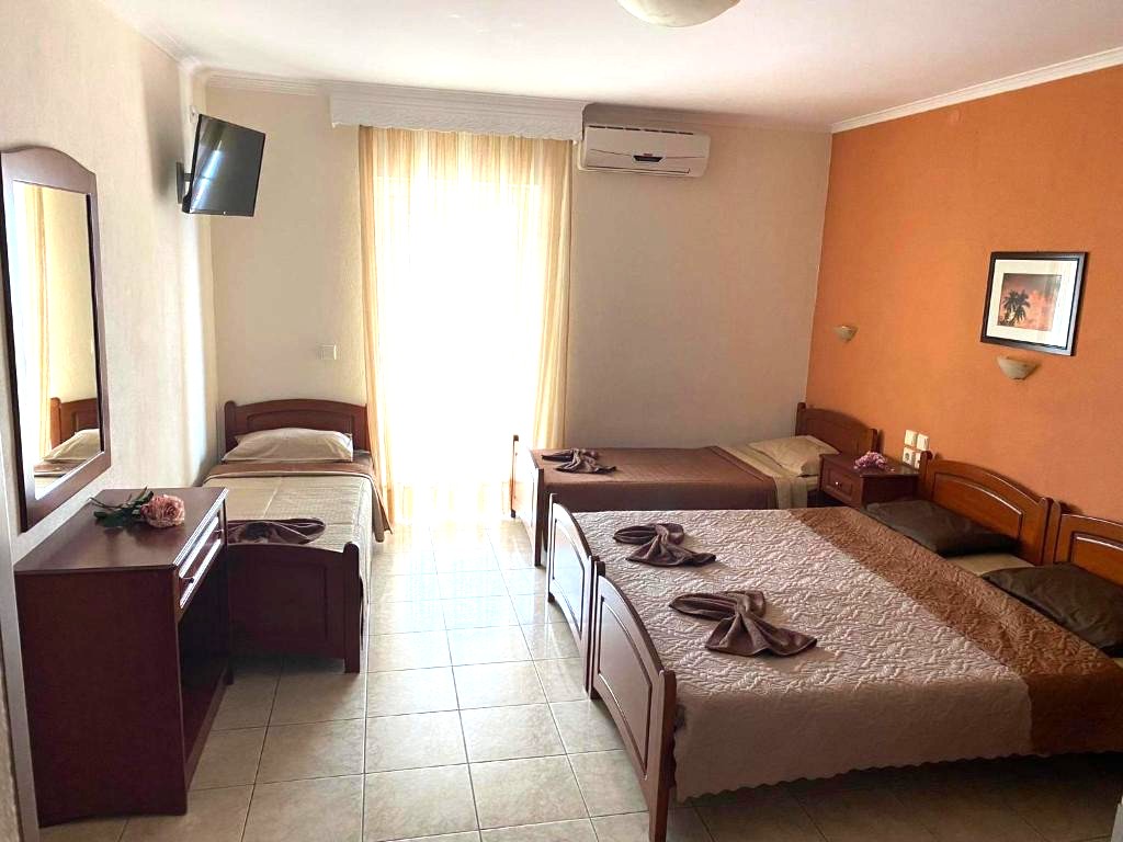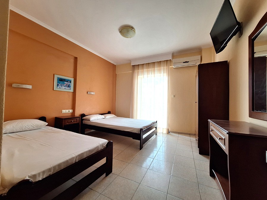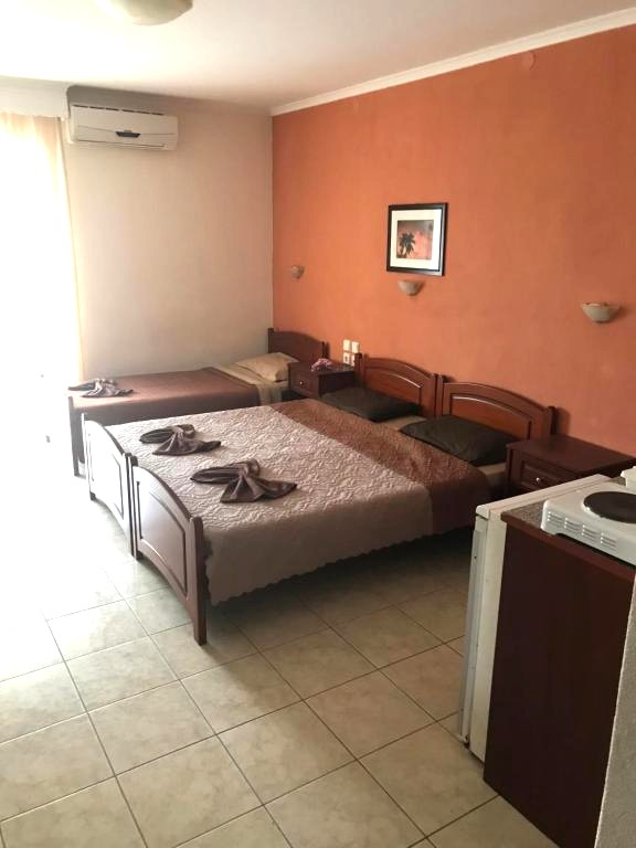 1/3 studio – u jednoj prostoriji čajna kuhinja, jedan bračni ležaj i jedan običan ležaj ili tri obična ležaja - Korišćenje klima uređaja se doplaćuje 6 evra dnevno (cena je podložna promeni)