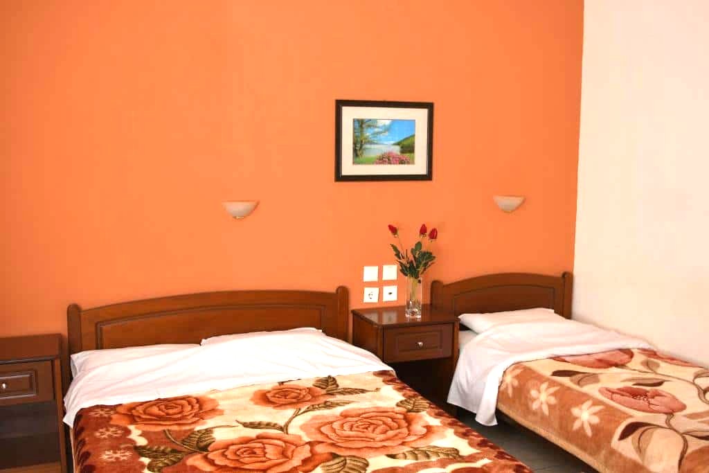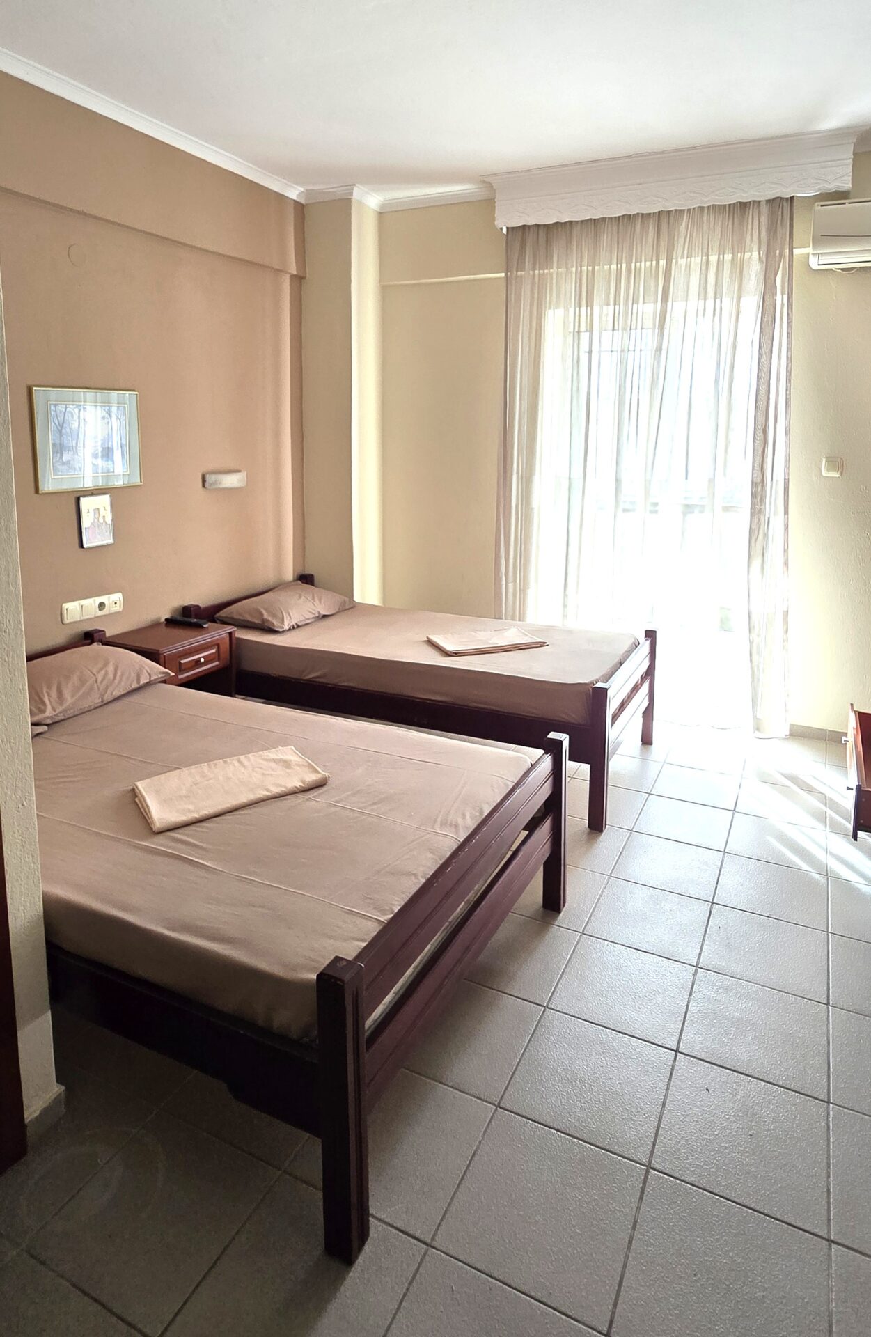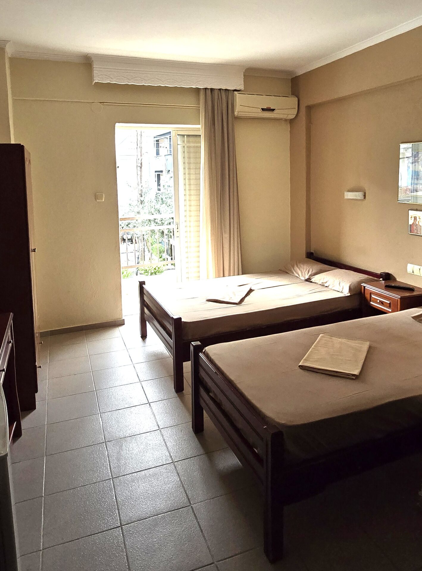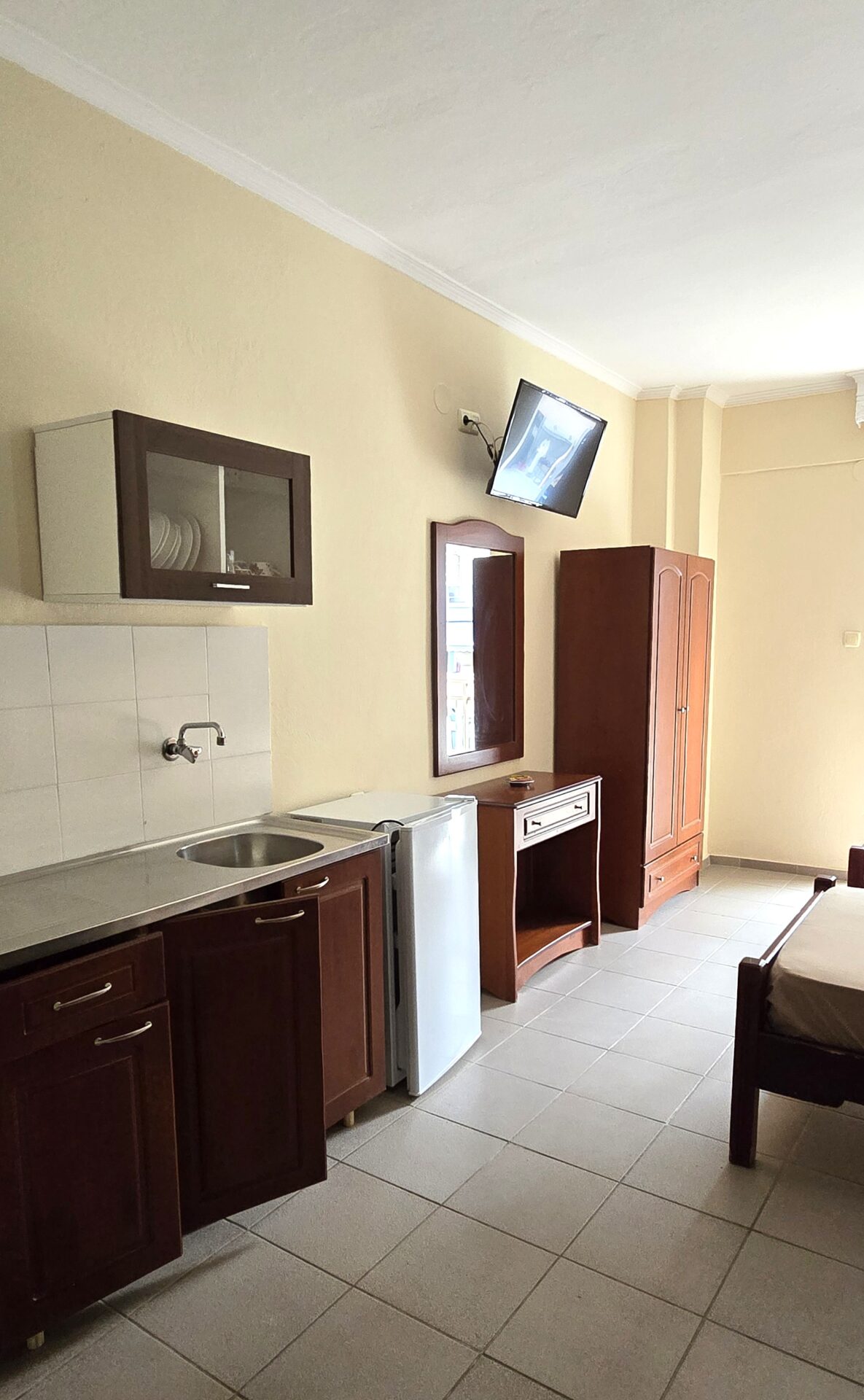 1/3 studio – u jednoj prostoriji čajna kuhinja, jedan bračni ležaj i jedan običan ležaj ili tri obična ležaja - Korišćenje klima uređaja se doplaćuje 6 evra dnevno (cena je podložna promeni)