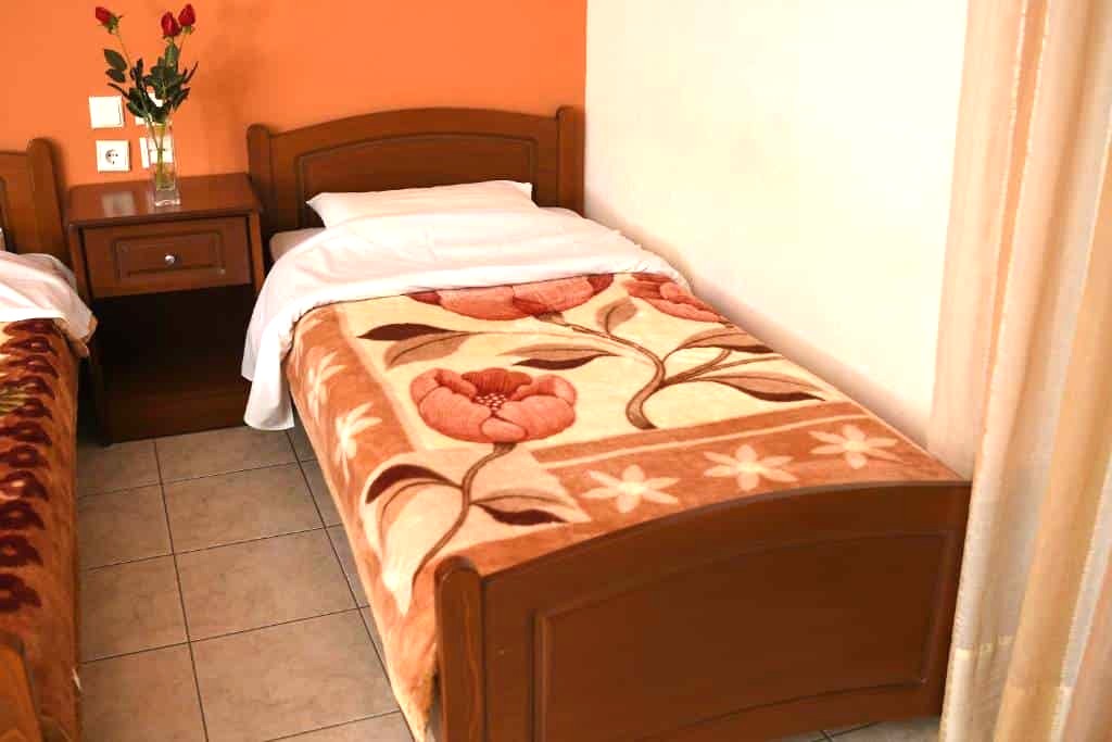 - Vila Manos se nalazi na izuzetnoj lokaciji, u glavnoj ulici koja ide od Lidla ka crkvi, oko 220 metara od plaže, u centru Paralije i u blizini svih prodavnica, taverni, kafića, suvenirnica i ostalih turističkih sadržaja. Veliki supermarket Lidl je udaljen svega 50-ak metara.