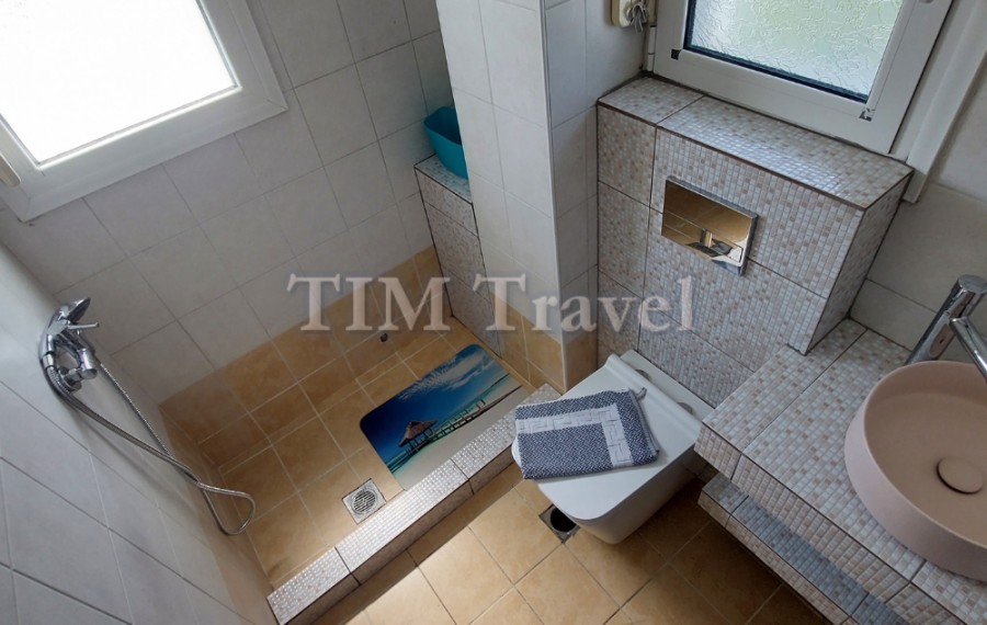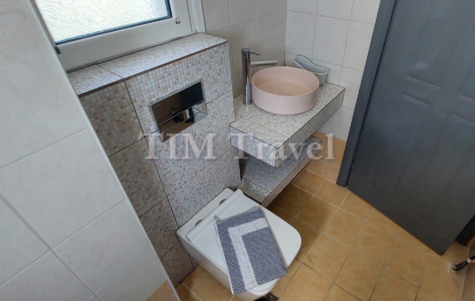 - Vila raspolaže apartmanom na prvom spratu predviđenim za smeštaj 5 osoba (bračni krevet u spavaćoj sobi, a kauč na razvlačenje dimenzija 185cmx110cm, i bračni krevet u kuhinjskom delu).