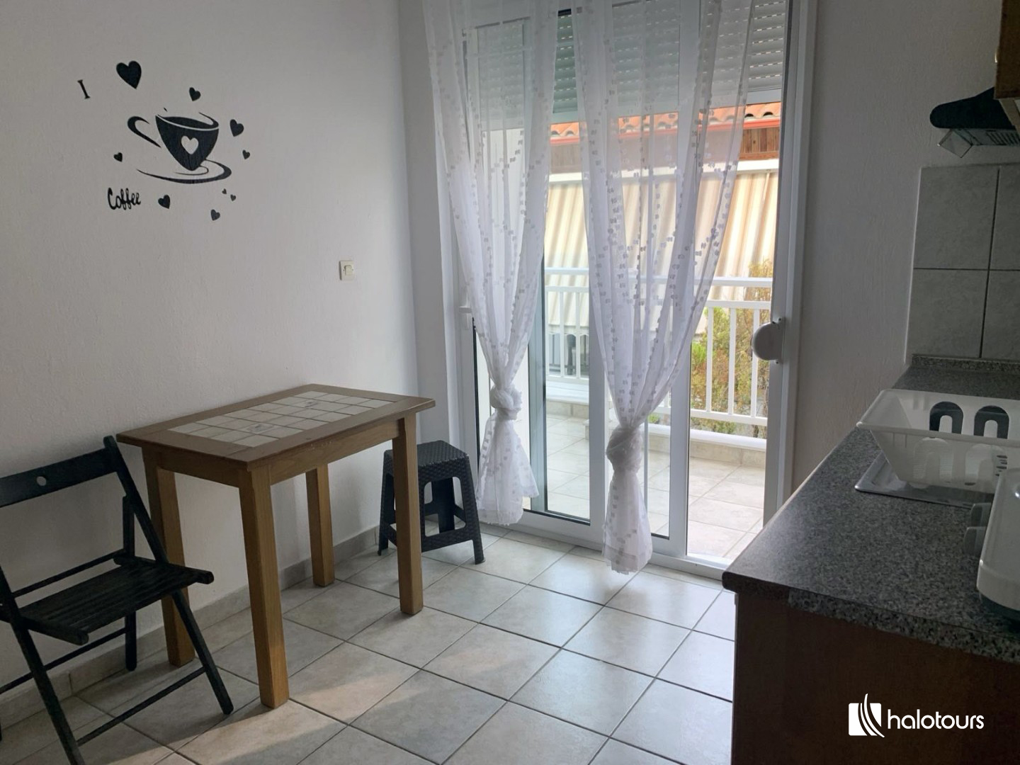 - 1/2 studio – jedna prostorija sa francuskim ležajem (140 cm) i kuhinjskim delom u okviru sobe.