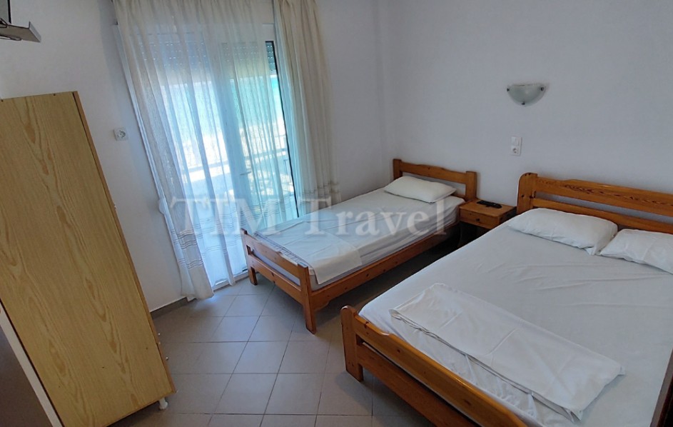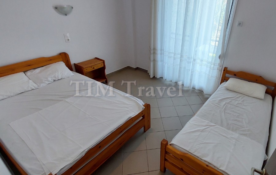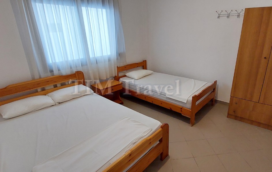- Opis: Vila raspolaže dupleks apartmanima predviđenim za smeštaj šest osoba (dve spavaće sobe, obe sa grčkim bračnim i standardnim krevetom) i pet osoba (dve spavaće sobe, jedna sa dva standardna kreveta, druga sa grčkim bračnim i standardnim krevetom), kao i apartmanima predviđenim za smeštaj pet osoba (grčki bračni krevet u kuhinjskom delu, grčki bračni i standardni krevet u spavaćoj sobi) i četiri osobe (grčki bračni krevet u kuhinjskom delu, dva standardna kreveta u spavaćoj sobi). Svi apartmani se nalaze u prizemlju i na 1. spratu vile, klimatizovani su (bez doplate), poseduju kuhinjski deo opremljen za predviđeni broj osoba, TV, TWC, kao i terasu sa garniturom za sedenje sa direktnim pogledom na more. Svi gosti vile Georgia 1 imaju mogućnost korišćenja parking mesta u dvorištu.