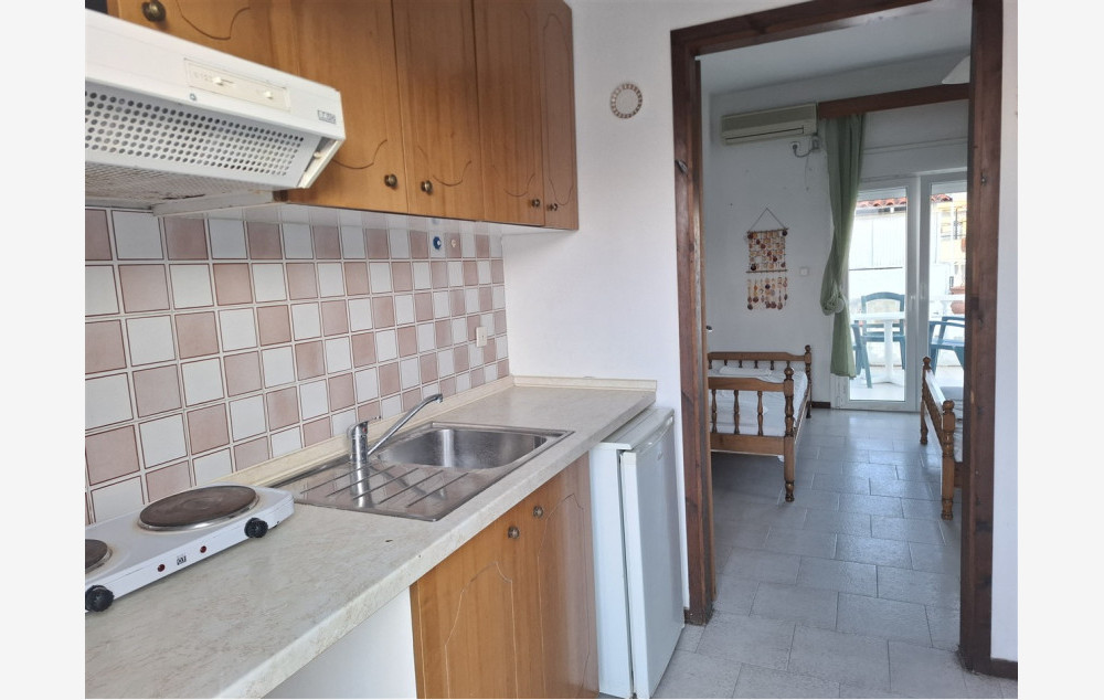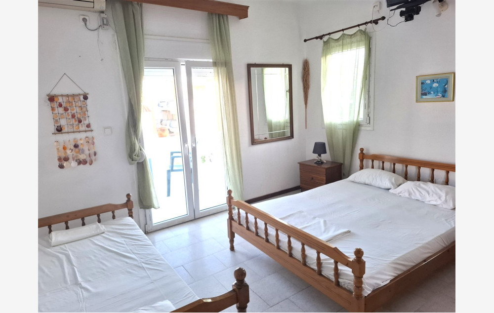 Vila Aloni je smeštena u mirnom delu Polihrona, u blizini centra a na oko 120 metara udaljenosti od plaže. U ponudi ovog objekta su dvokrevetni i trokrevetni studiji smešteni u visokom prizemlju i na prvom spratu. Svaka smeštajna jedinica poseduje osnovno opremljenu kuhinju, pre par godina renovirano kupatilo, komfornu terasu, TV i klima uređaj čije se korišćenje dodatno naplaćuje. Promena posteljine je na polovini boravka a u objektu postoji i mogućnost korišćenja WiFi interneta. Ovaj objekat nema peškire.