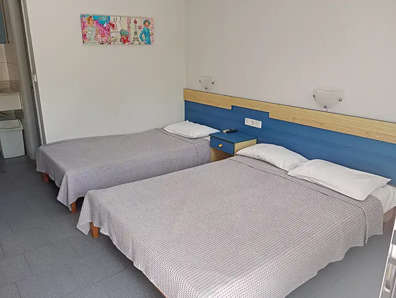 - Promena posteljine i peškira je jednom u toku smene, gosti sami održavaju higijenu. Smeštajne jedinice se nalaze na visokom prizemlju i prvom spratu i imaju terase sa pogledom na ulicu ili bazen.