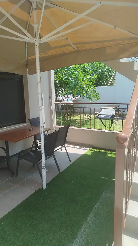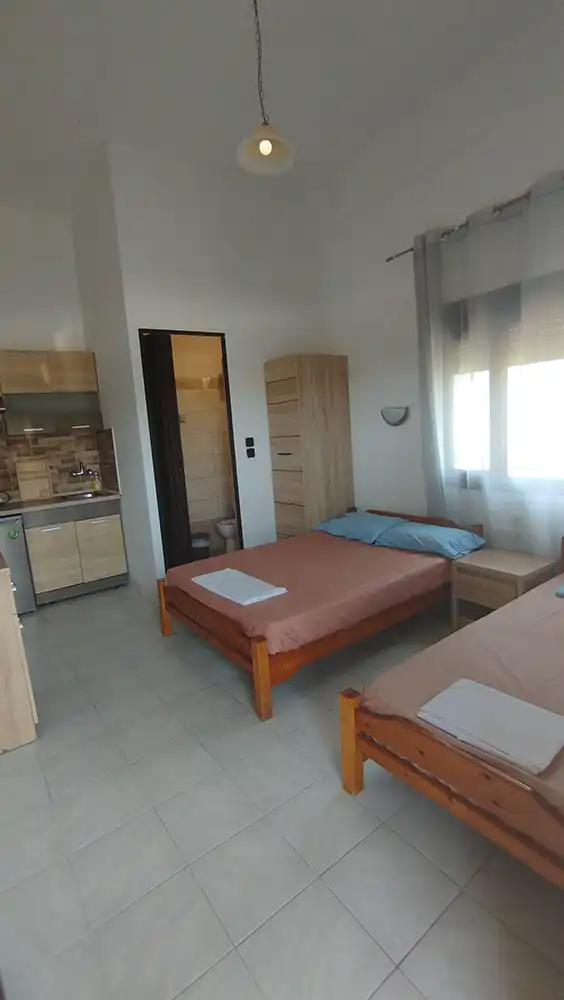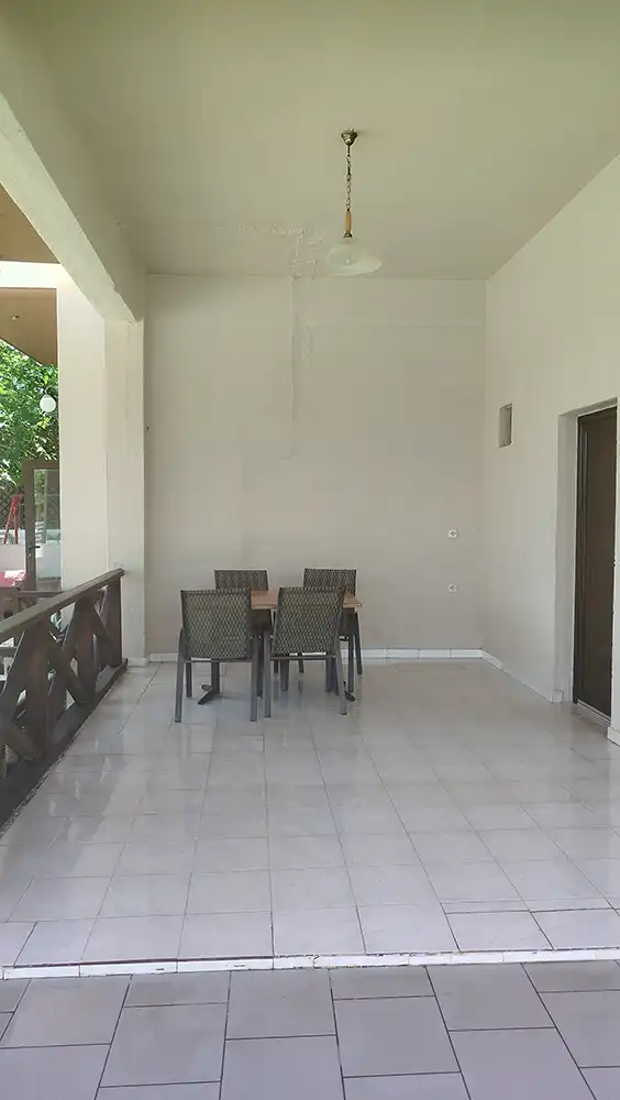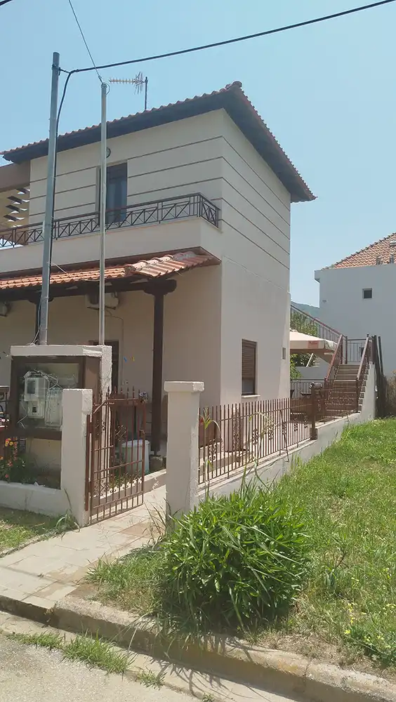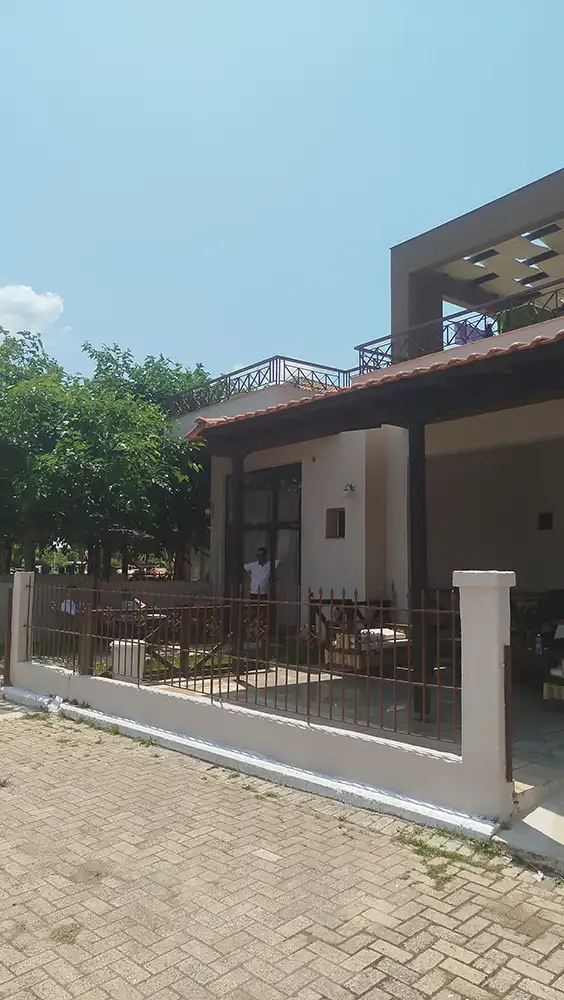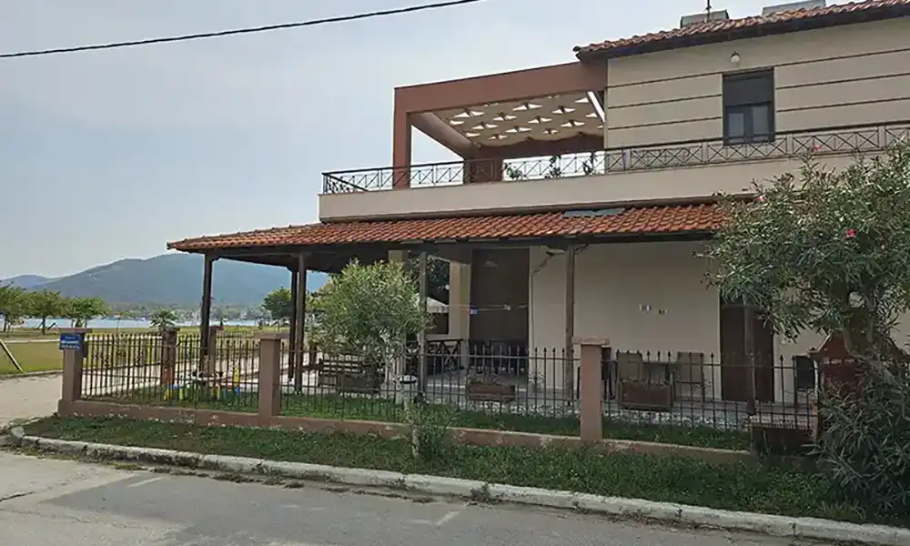 - Vila Irini se nalazi u novijem delu Stavrosa, na odličnoj poziciji, 20 metara od plaže. Poseduje dvorište koje ima dva ulaza za studije, garnituru za sedenje, roštilj. Studiji imaju direktan pogled na more, bočni pogled na more i jedan studio ima pogled na ulicu i susedno dvorište.