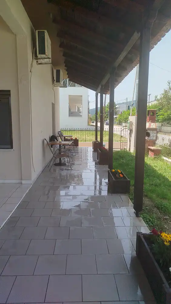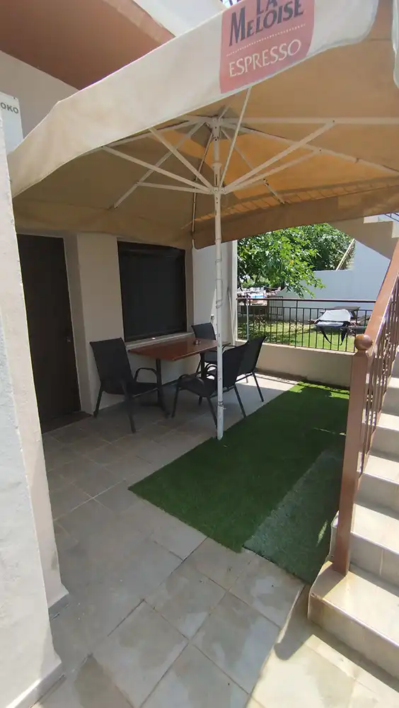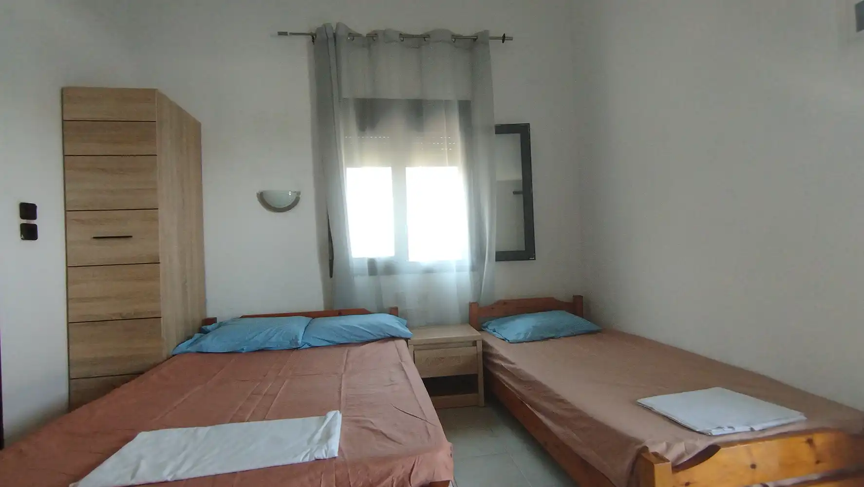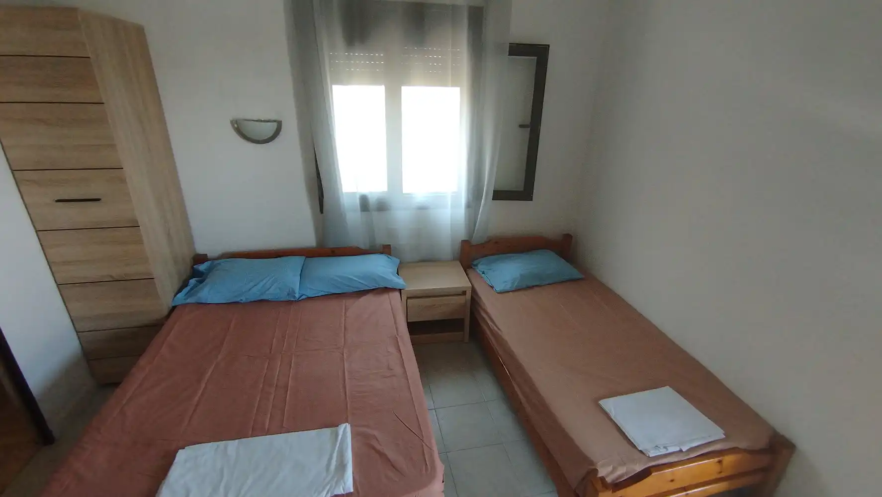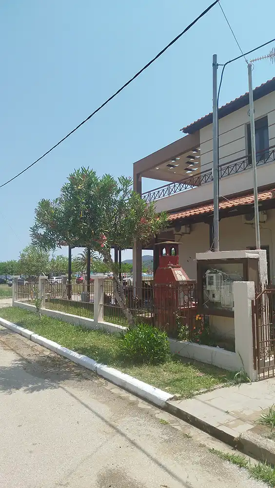 Ulazak u smeštaj je u 14h po Grčkom vremenu prvog dana boravka, a izlazak iz smeštaja je u 09h po Grčkom vremenu poslednjeg dana boravka. - GPS : 40°40’15.8″N 23°41’33.4″E