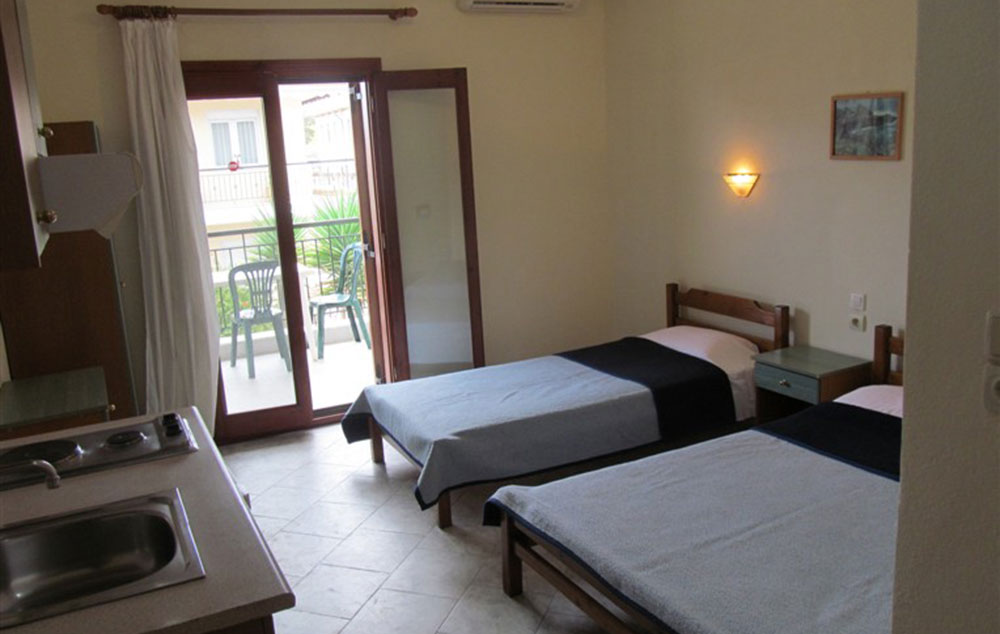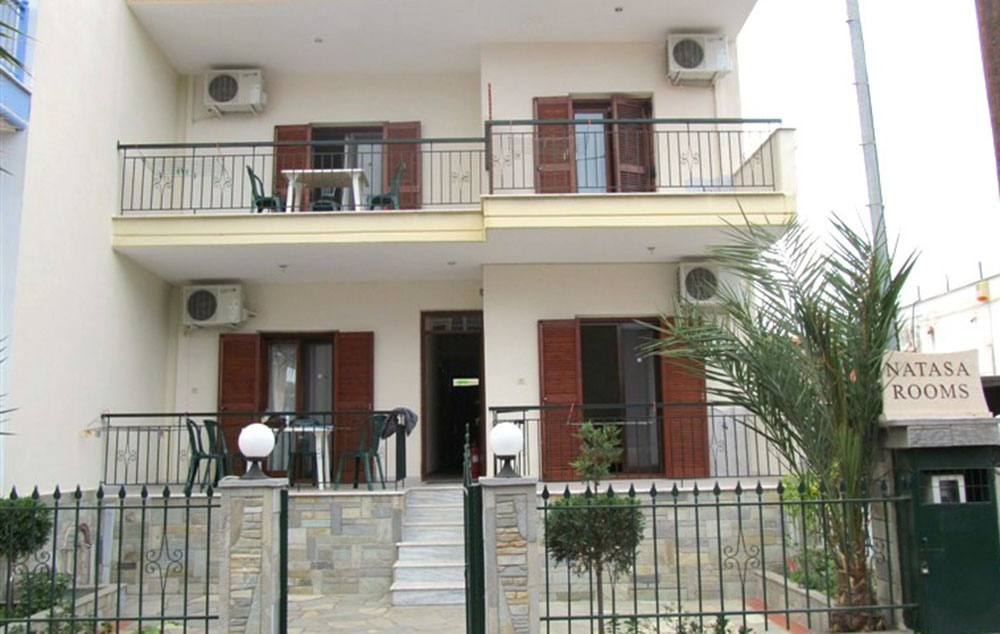 Vila Nataša se nalazi u centralnom delu Stavros ina oko 200 metara udaljenosti od plaže. Ovaj objekat, koji se lepo održava, raspolaže dvokrevetnim i trokrevetnim studijima, koji su smešteni na visokom prizemlju i prvom spratu. Sve smeštajne jedinice poseduju osnovno opremljenu kuhinju, kupatilo, komfornu terasu, TV i klima uređaj, čije se korišćenje dodatno naplaćuje. U objektu postoji i mogućnost korišćenja WiFi interneta, dok se promena posteljine vrši jednom u toku boravka.Ovaj objekat ne poseduje peškire.
