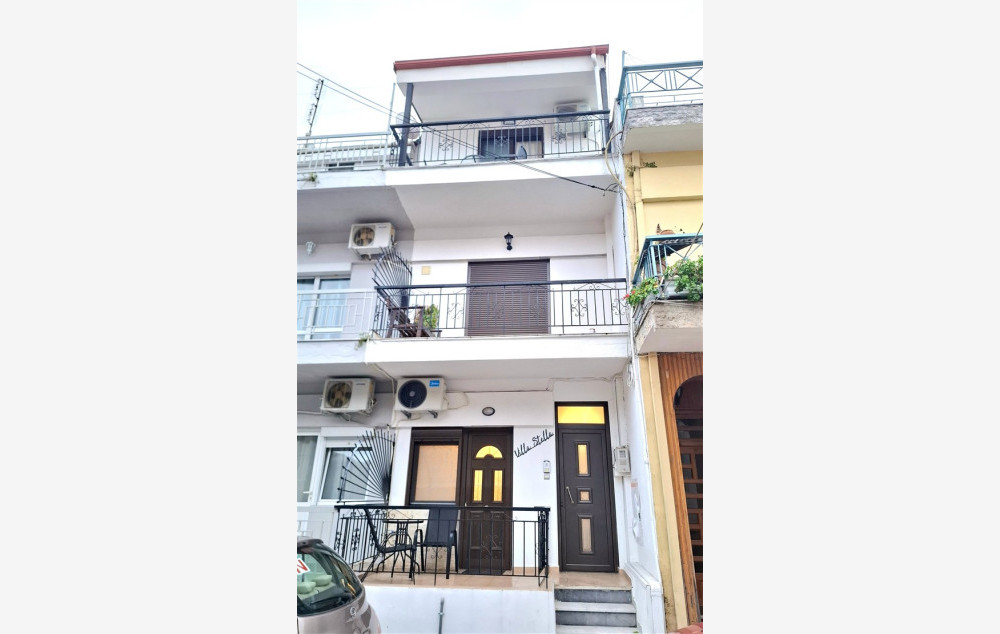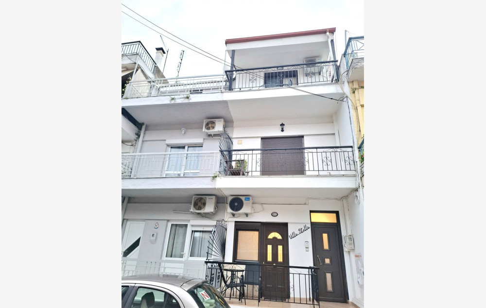 Vila Stela se nalazi u samom centru Stavrosa, na oko 150 metara udaljenosti od mora, u blizini brojnih prodavnica, kafića, restorana. Raspolaže renoviranim trokrevetnim i četvorokrevetnim apartmanima. Svaka smeštajna jedinica poseduje osnovno opremljenu kuhinju, kupatilo, dve terase, TV i klima uređa, čije je korišćenje uključeno u cenu najma apartmana. Promena posteljine je jedanput u toku boravka, a u vili postoji i mogućnost korišćenja WiFi interneta.Ovaj objekat ne poseduje peškire.