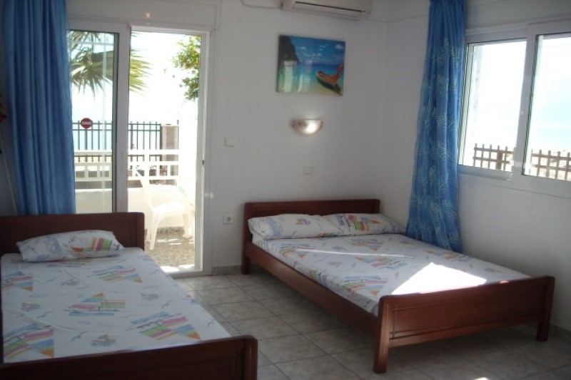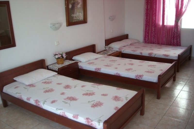 - Četvorokrevetni apartman ima odvojenu spavaću sobu u kojoj se nalazi jedan grčki francuski ležaj (dimenzija oko 130 cm) i dva klasična ležaja od kojih je jedan u spavaćoj sobi, a drugi u izdvojenom kuhinjskom delu. Promena posteljine je jedanput u toku boravka.