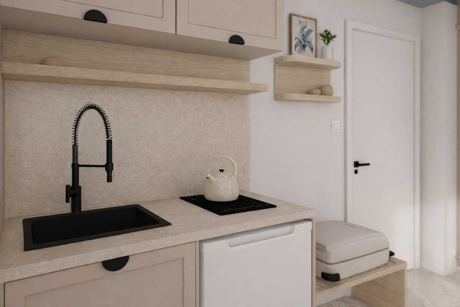 *Kuhinje u apartmanima su opremljene najosnovnijim posuđem i priborom i pogodne su samo za pripremanje laganih obroka. Ukoliko planirate pripremanje raznovrsnijih i obilnijih obroka, predlažemo da ponesete dodatnu šerpu, veliki nož, kuhinjsku krpu, kutlaču i sl.