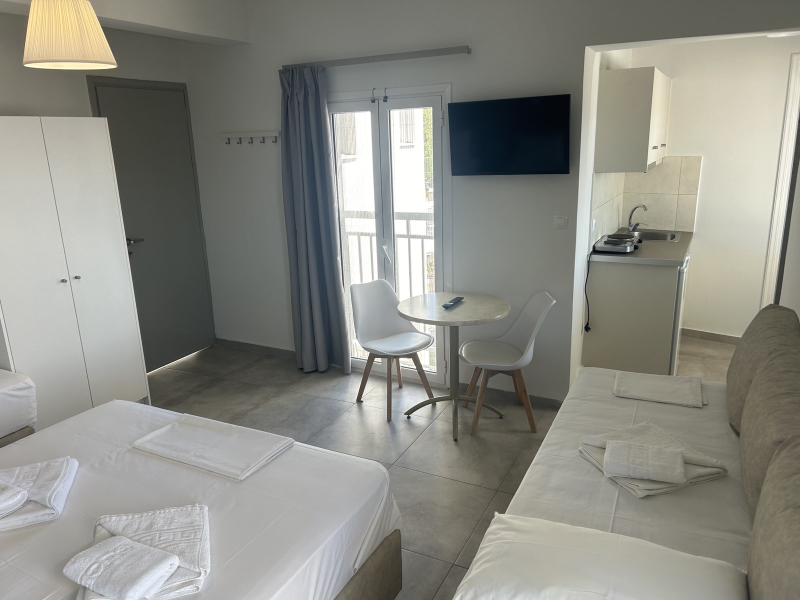 - Svi studiji sadrže spavaći deo, kuhinju sa trpezarijom, kupatilo. Sobe su klimatizovane i imaju TV. Zamena posteljine i peškira se vrši na 5 dana.