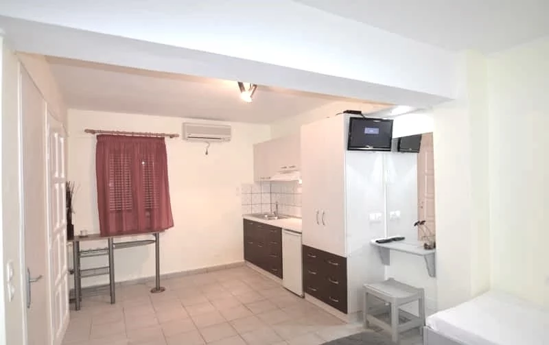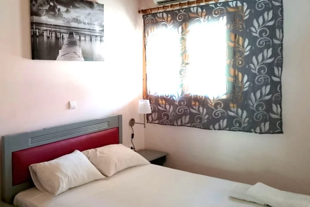 - Apartmani se sastoje od dve prostorije, u spavaćoj sobi je francuski krevet, dok je dnevna soba opremljena sa dva standardna kreveta, kuhinjom i kupatilom. Klima uređaj postoji u obe prostorije. Svaka smeštajna jedinica poseduje osnovno opremljenu kuhinju, terasu ili terasni prostor/trem sa garniturom za sedenje, TV i klima uređaj (dva u apartmanima, po jedan u obe prostorije) čije je korišćenje se dodatno plaća (7€ dnevno). Promena posteljine i peškira je na pola smene.